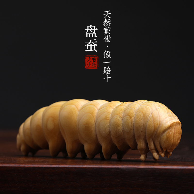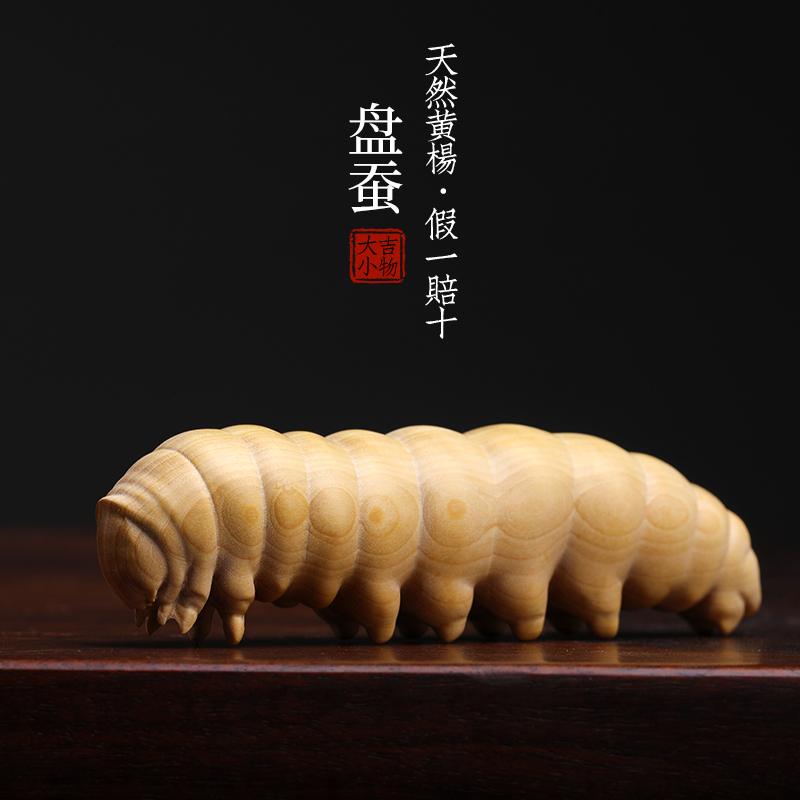 天然小叶黄杨木雕蚕宝宝创意文玩蚕虫子手把件盘玩装饰桌面小摆件
