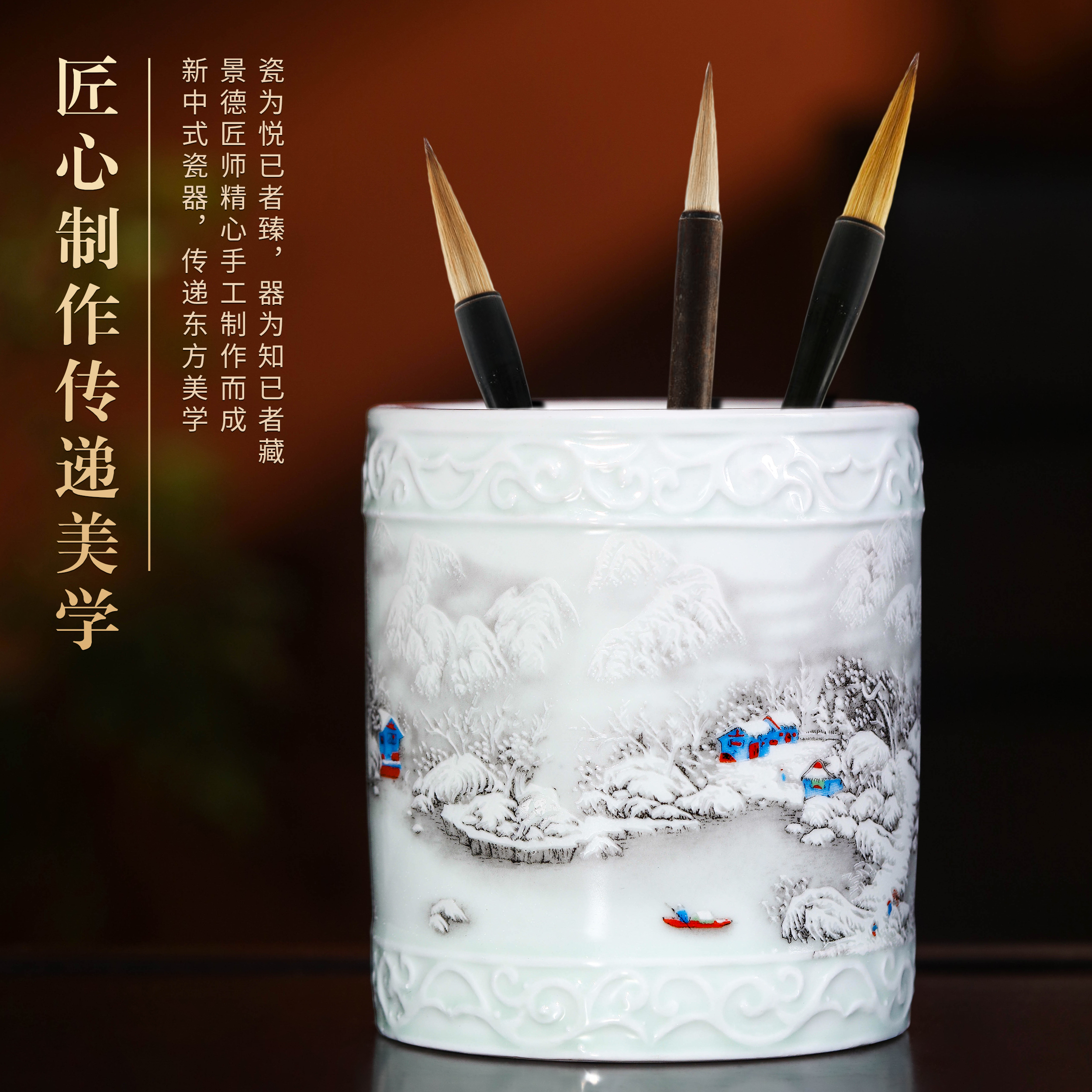 景德镇陶瓷笔筒中式礼品摆件毛笔定制笔筒大容量办公书房桌面收纳