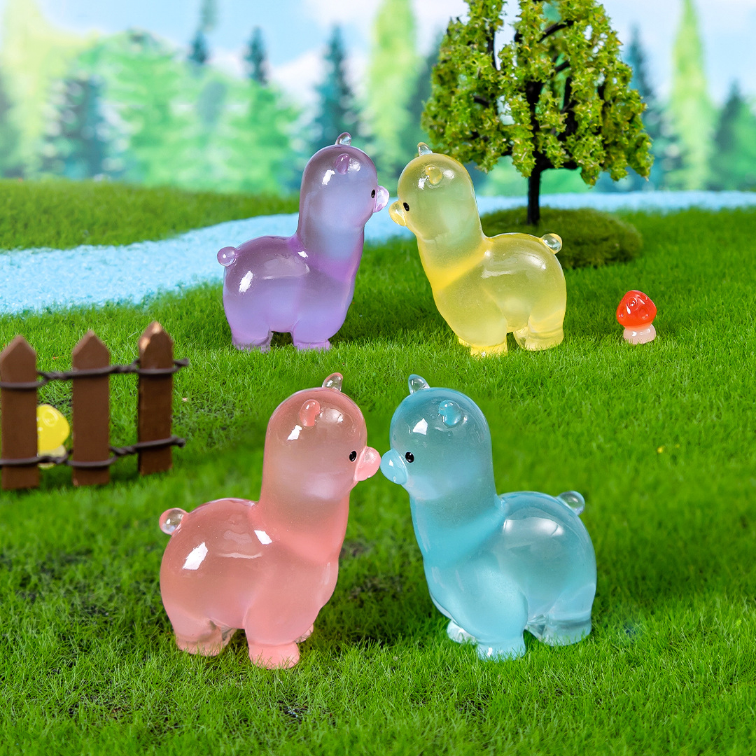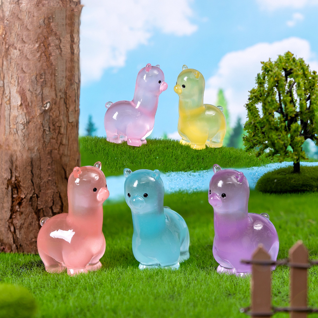 微景观树脂工艺品可爱卡通动物发夜光羊驼公仔多肉园艺造景小摆件