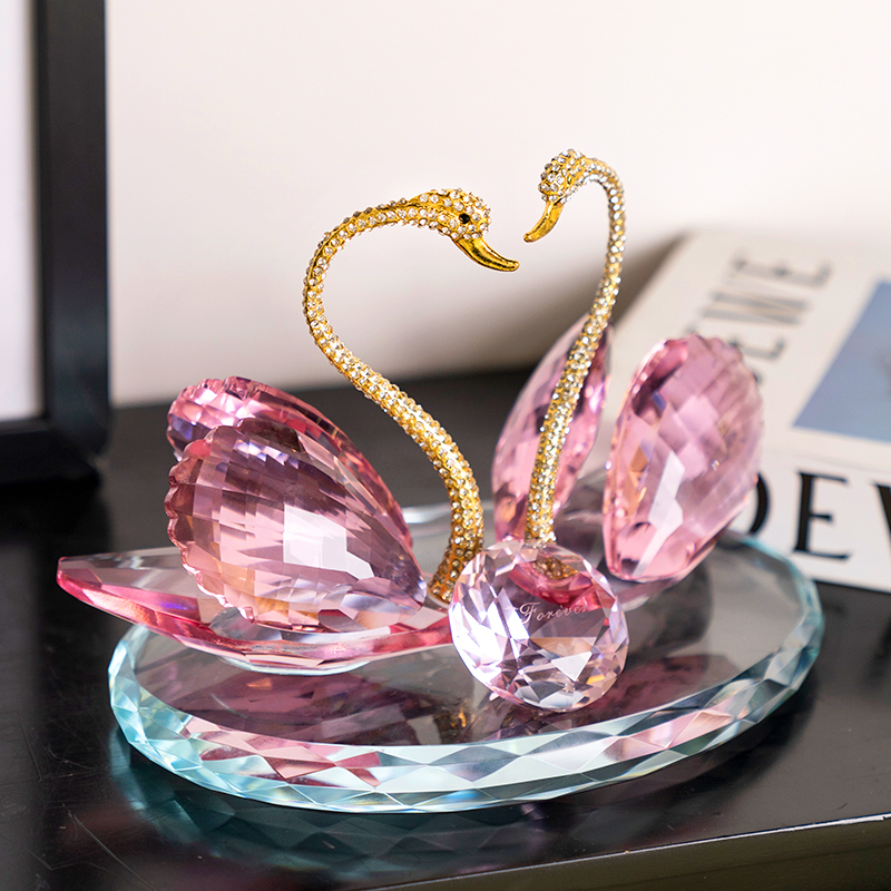 柏梵水晶天鹅摆件轻奢客厅酒柜情侣天鹅高档家居装饰乔迁结婚礼物