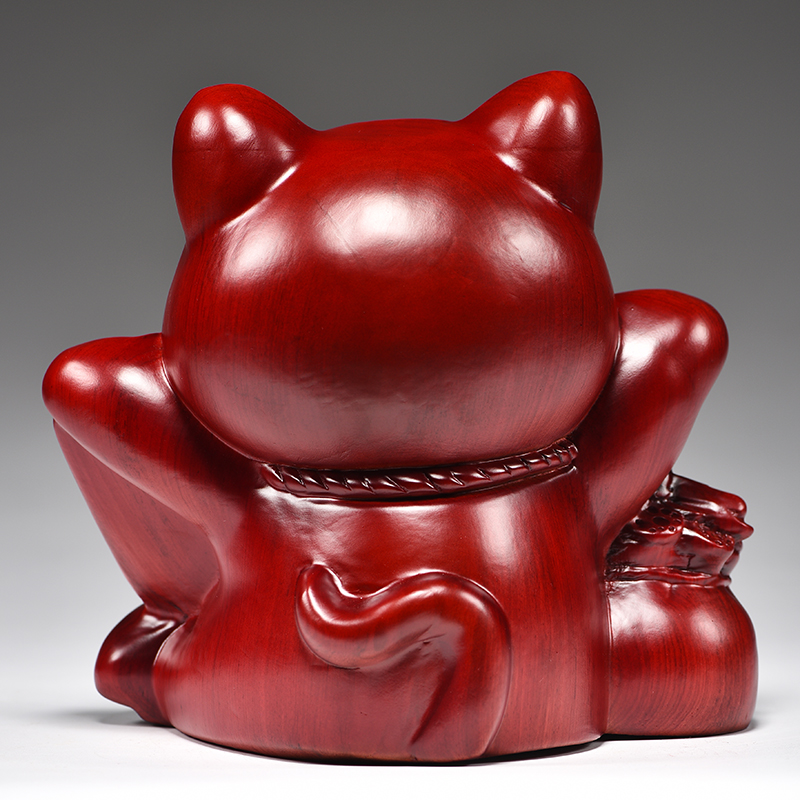 木雕招财猫摆件店铺开业礼品实木前台收银台家居客厅装饰红木礼品