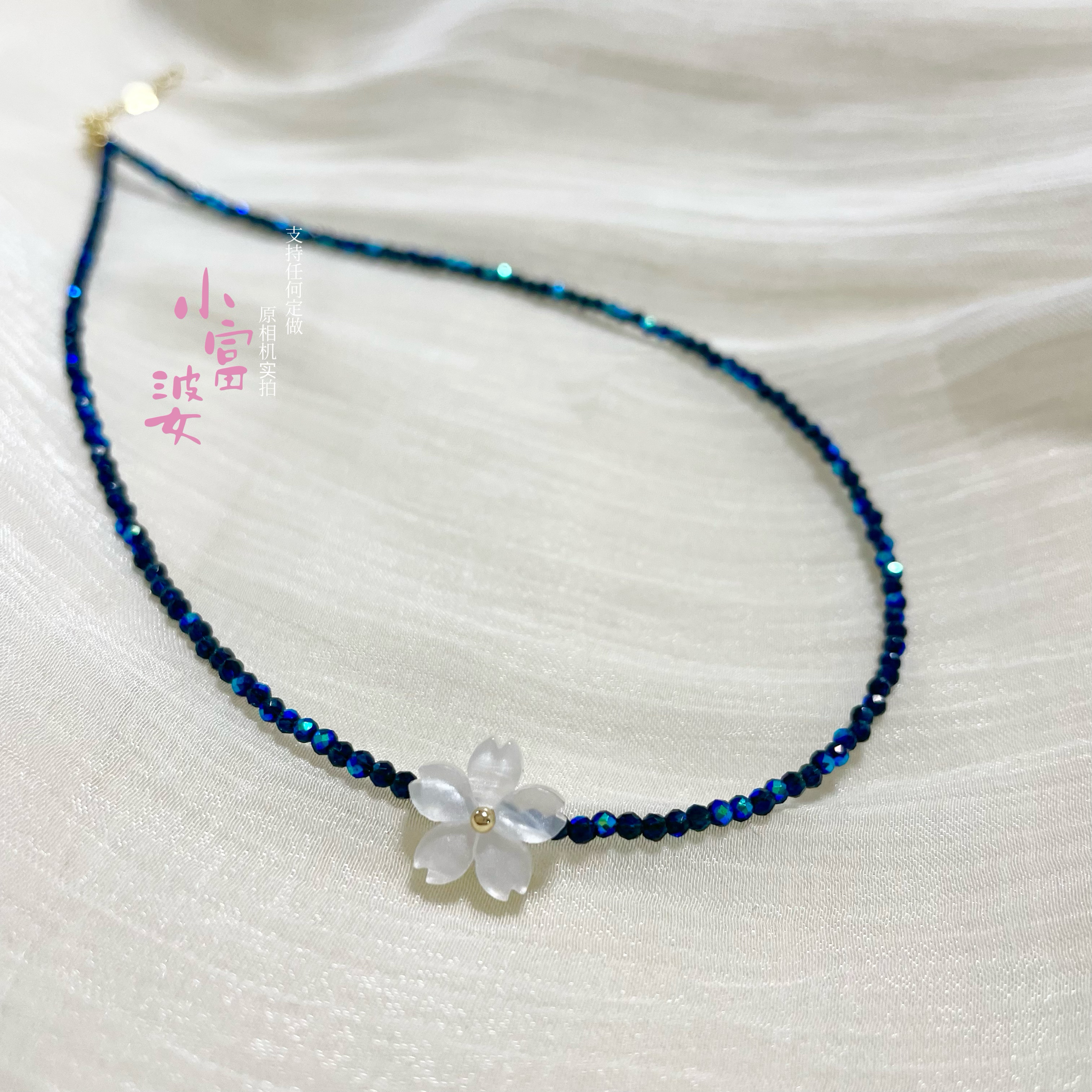 甜心教主同款施家水晶猫咪花朵克莱因蓝色小众设计锁骨链项链颈链