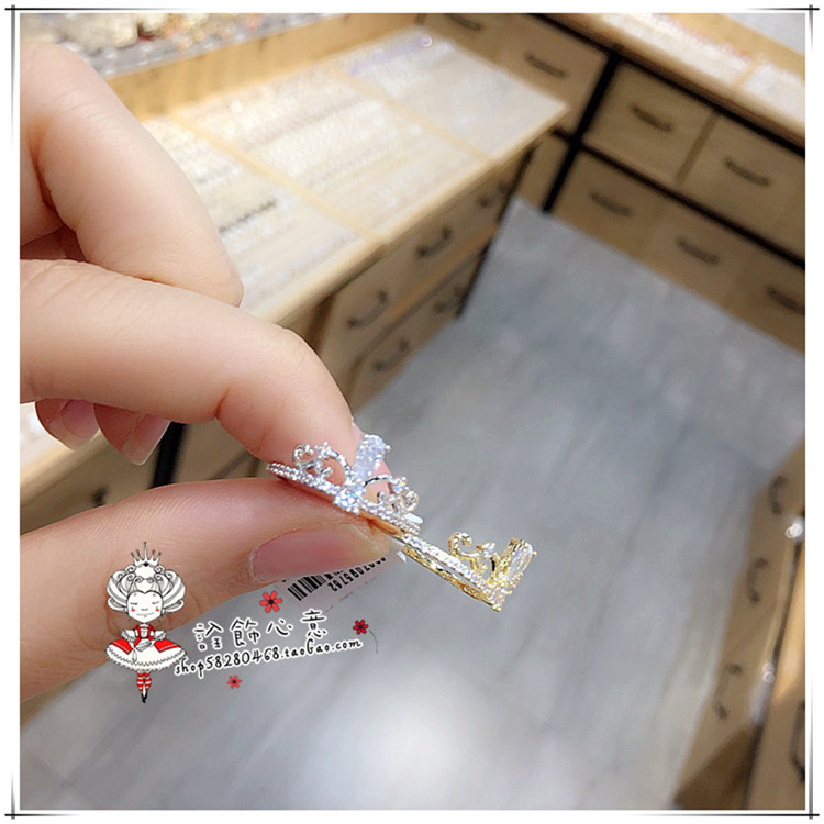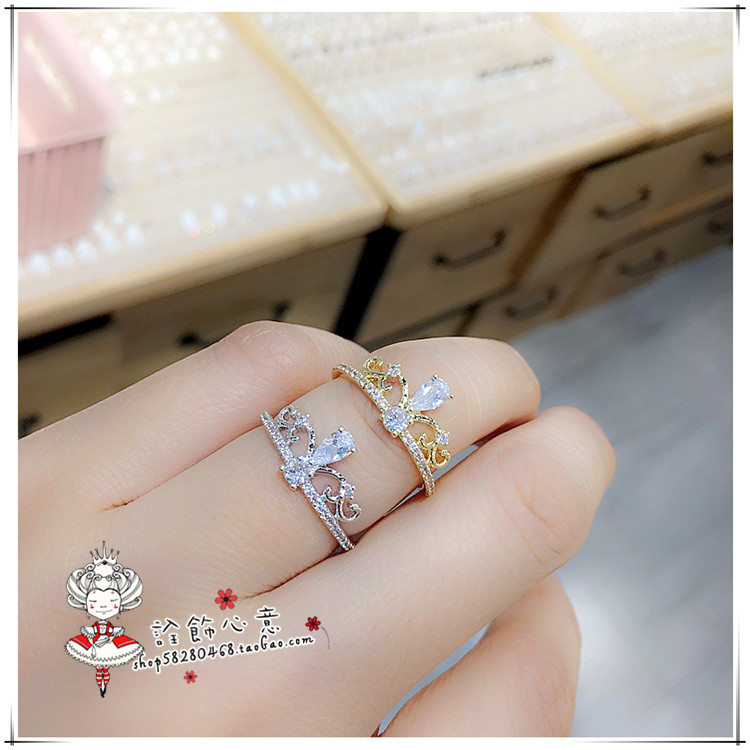 【诠饰心意】镶水滴锆石花纹皇冠戒指微镶钻闭口指环超仙女礼物