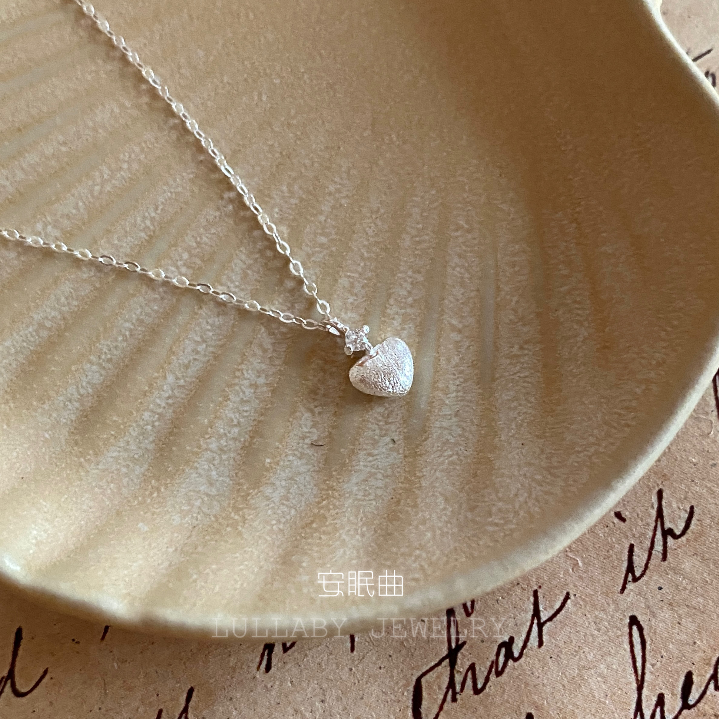 小心机系列 mini实心磨砂小爱心单钻锁骨链小众设计高级感项链女