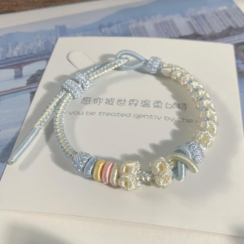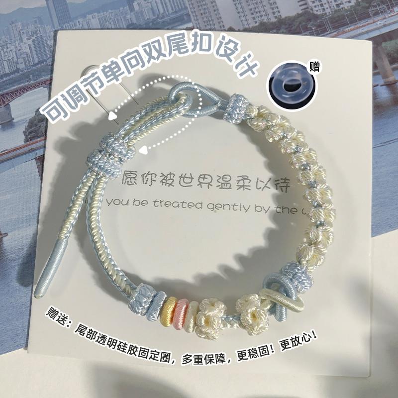 桃花编织手绳可穿黄金串转运珠手工编织绳小红书同款diy红绳手链