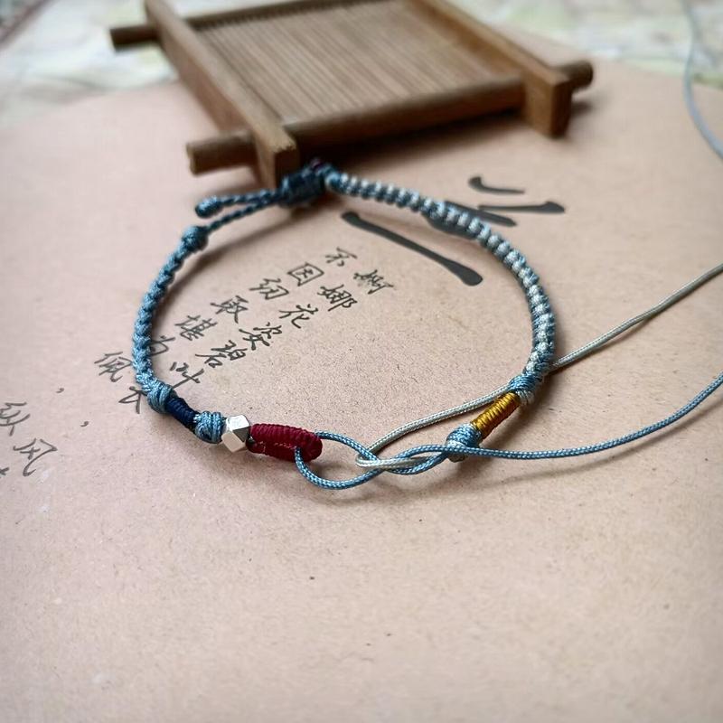可穿珠原创新中式民族风红绳手工编织情人结半成品手绳 银珠手链