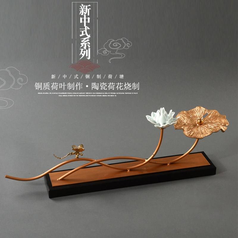 新中式荷花摆件样板房茶餐厅客厅玄关桌面摆设卧室电视柜软装饰品