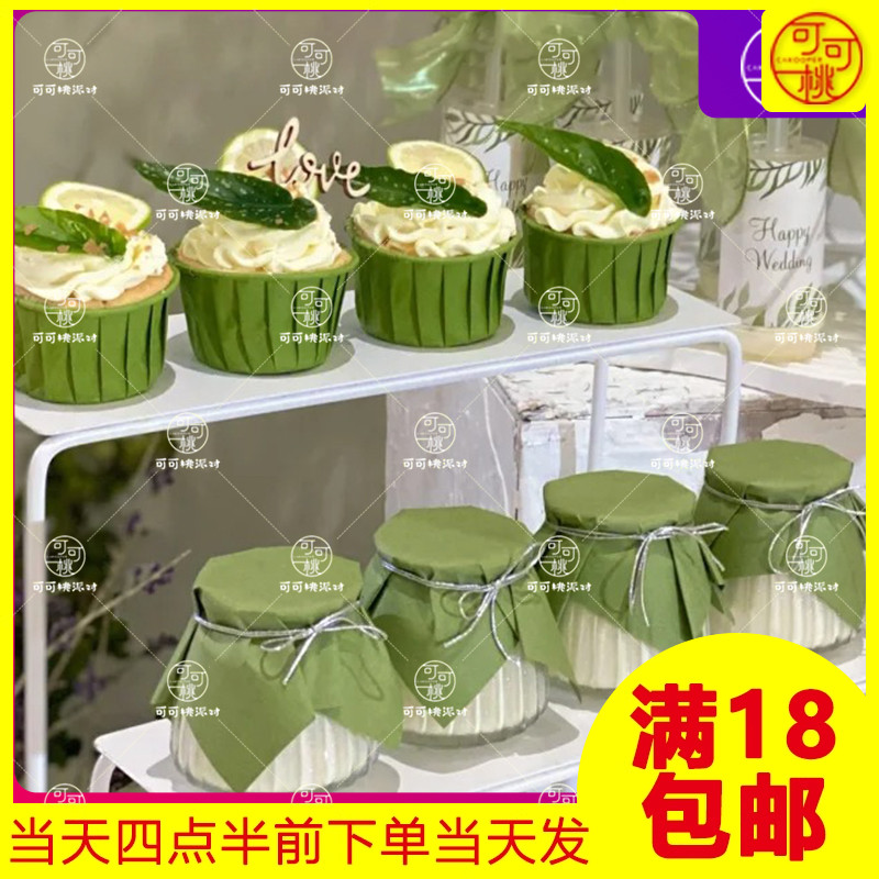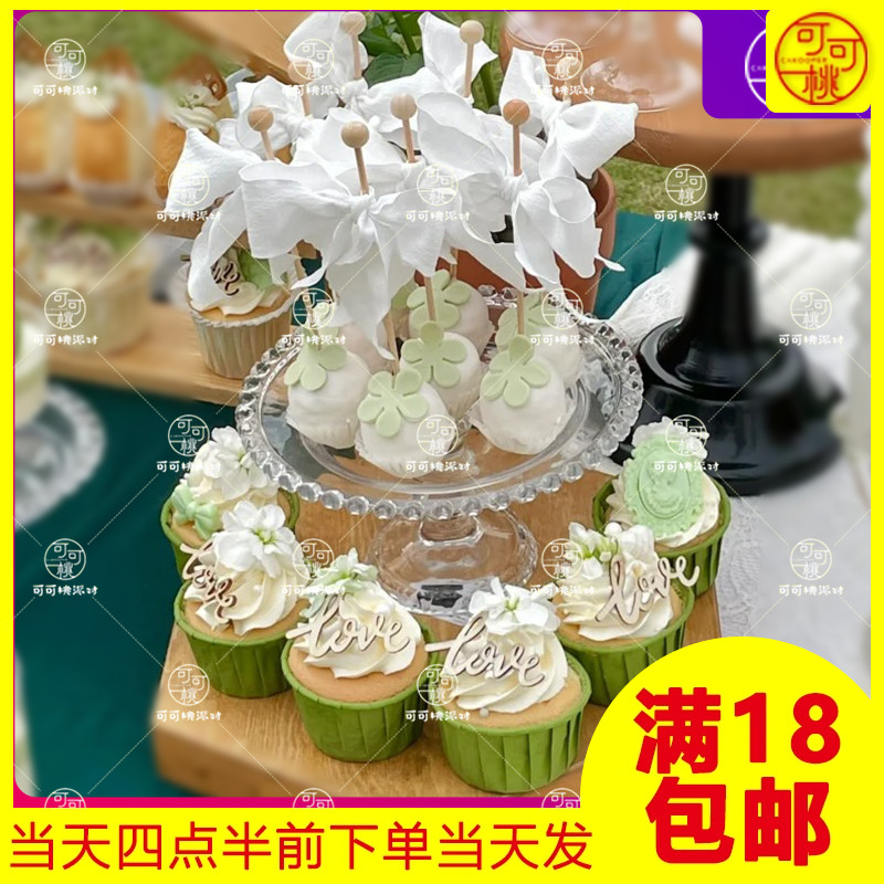 绿色系婚礼甜品台装饰布置森系订婚烘焙蛋糕纸杯插件木质love摆件