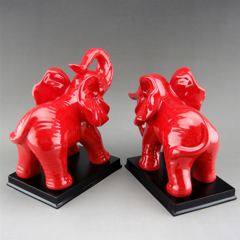 速发吉祥红色大象摆件一对简约家居装饰品陶瓷大象摆件工艺品摆件
