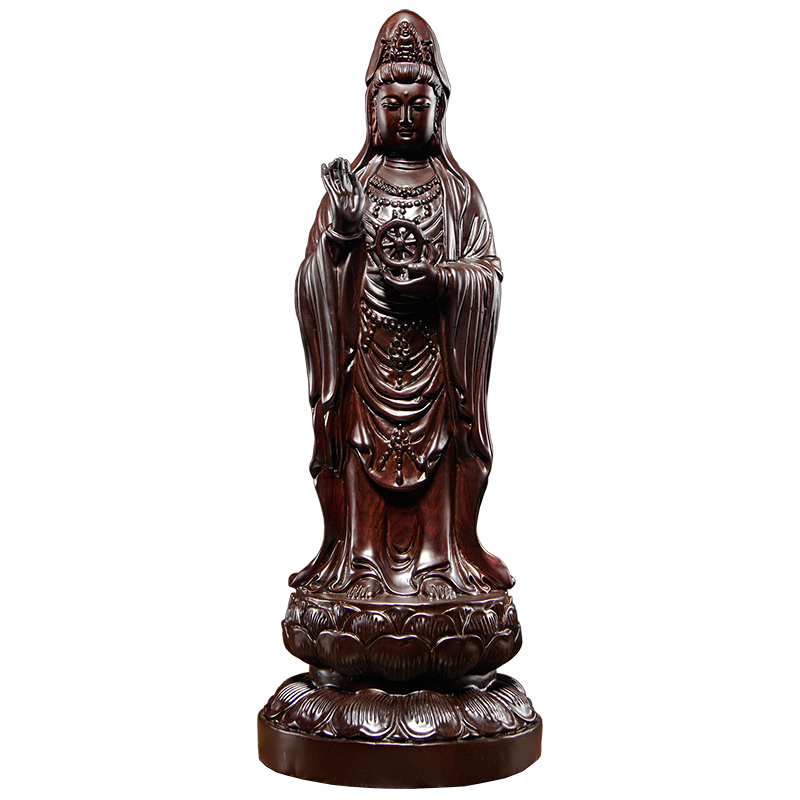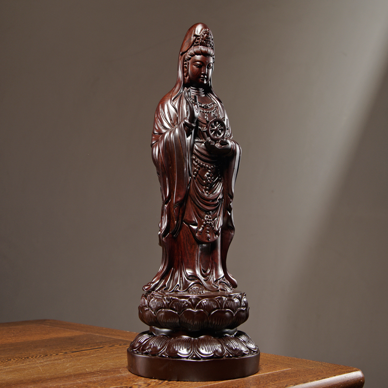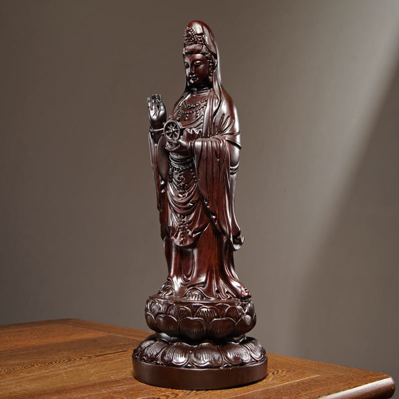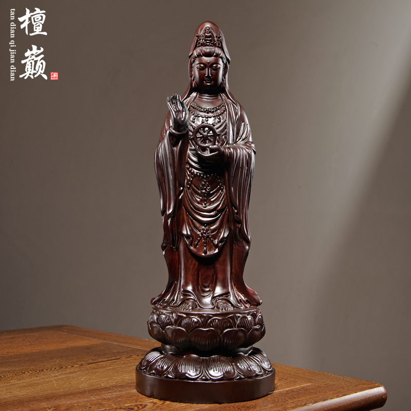 黑檀木雕观音菩萨佛像摆件实木南海观世音家居桌面摆设红木工艺品