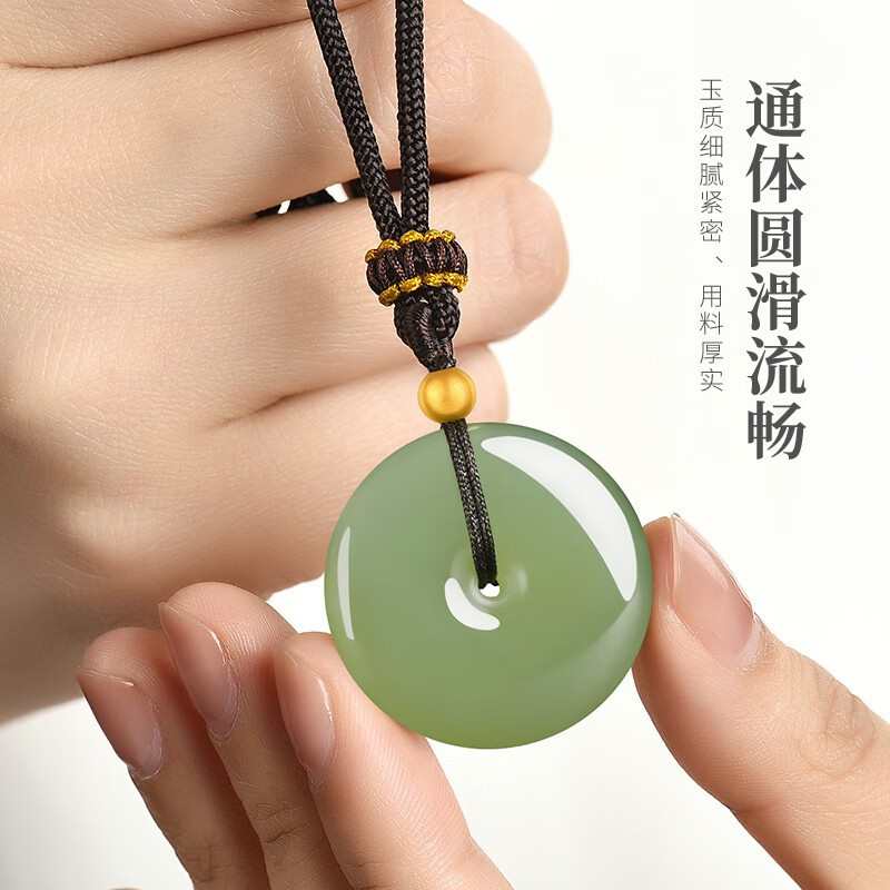天然和田玉青白玉平安扣吊坠足金晴水色玉坠玉佩男女款直播批发