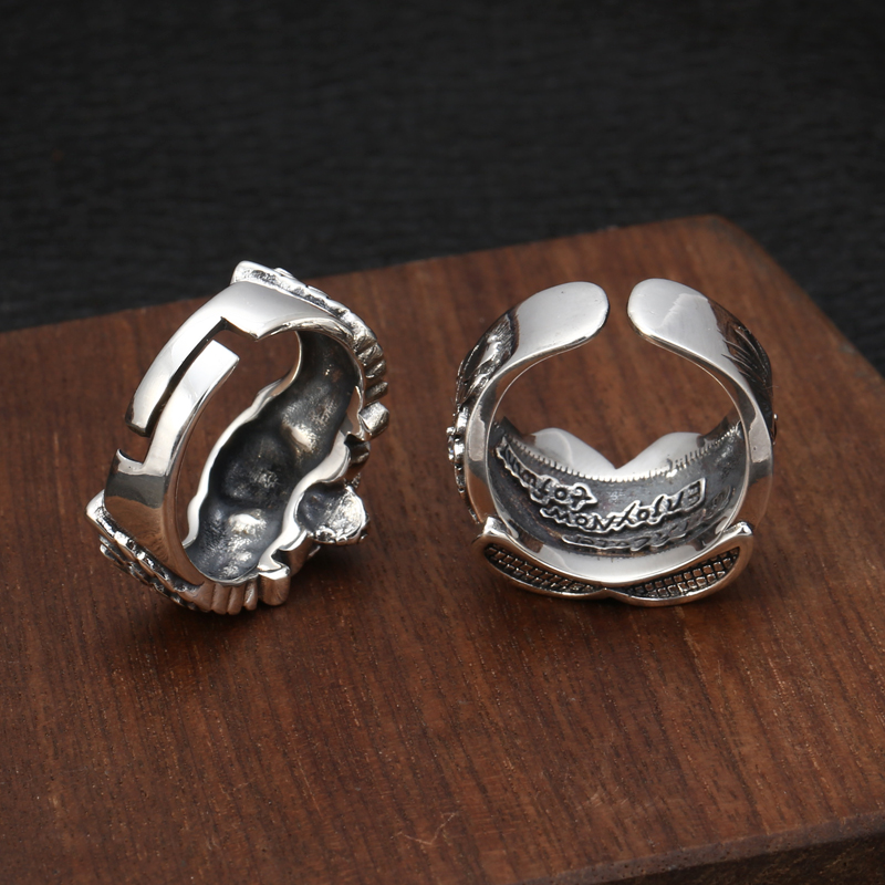 时尚潮流泰银食指戒指男款s925纯银个性翅膀骷髅头小丑开口指环