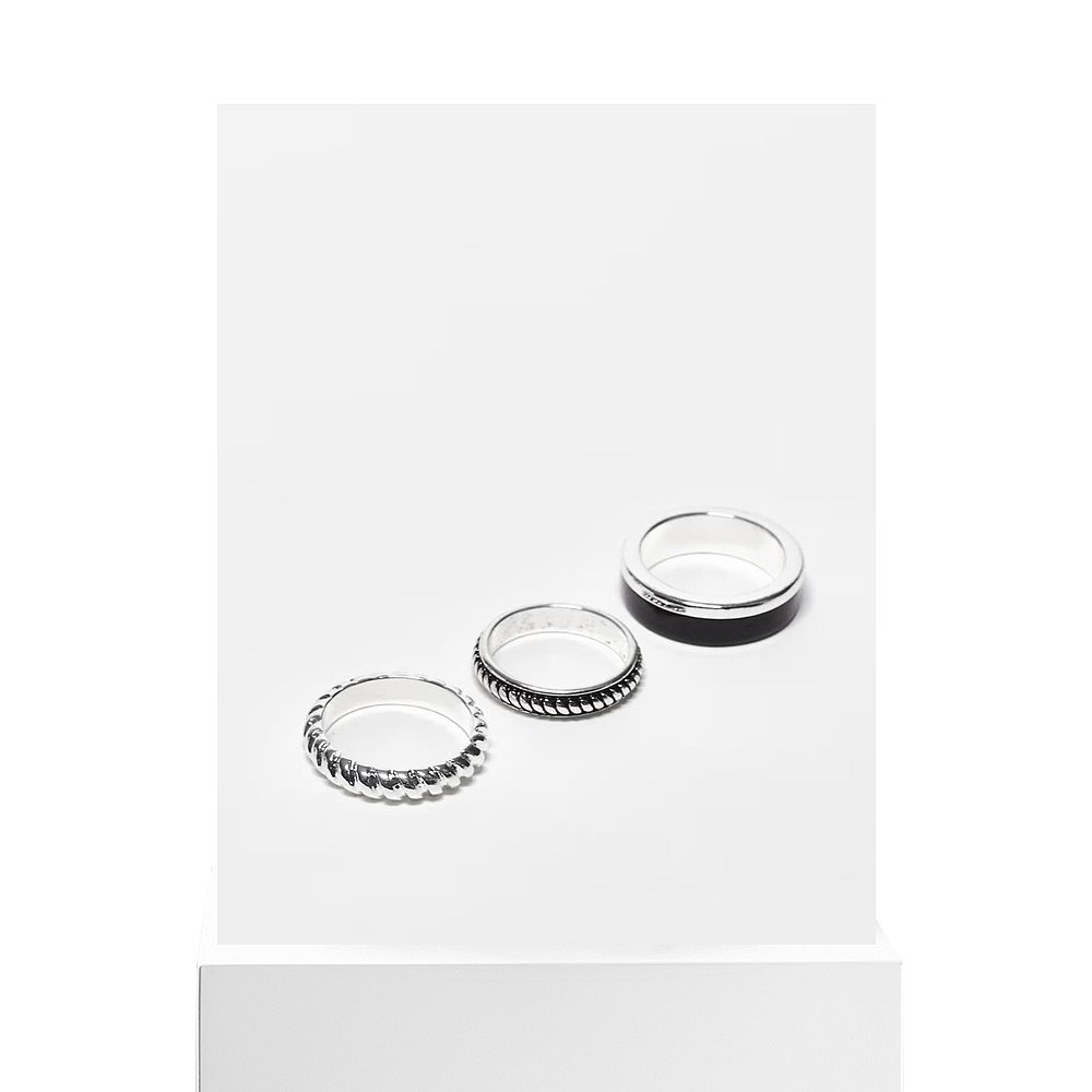 1h可退 香港直邮ASOS 男士 festival 设计黑色珐琅纹理色调戒指()