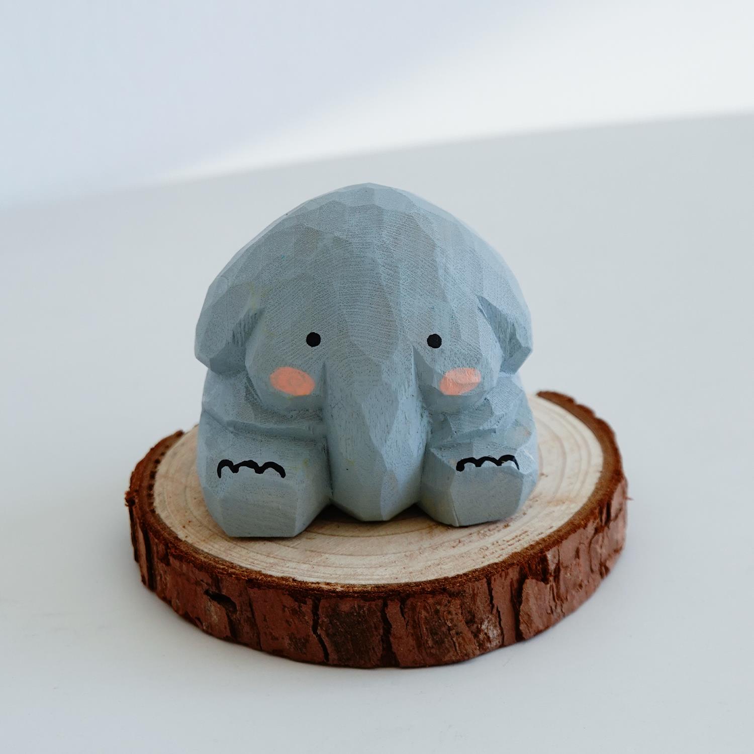 木刻自习室木雕大象摆件可爱小象动物书架挂柜子显示器屏幕装饰