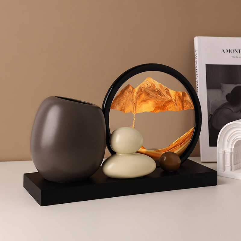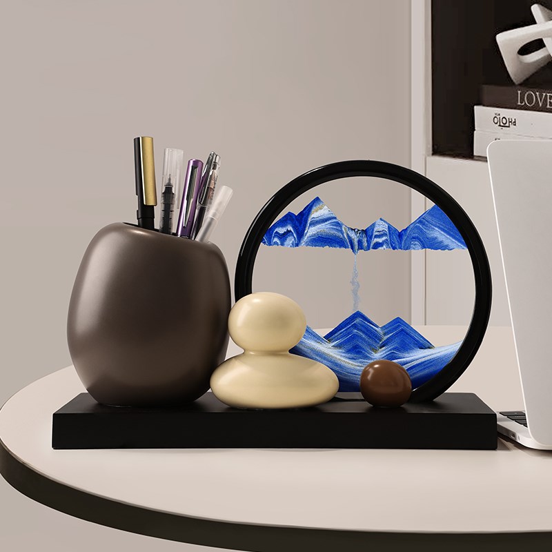 贝汉美时来运转流沙画创意笔筒办公室桌高级感小众酒柜装饰品摆件