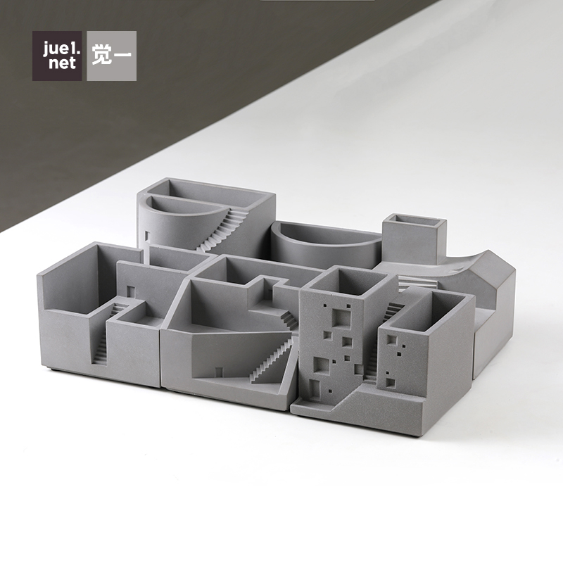 觉一水泥微型建筑模型装饰多功能创意摆件陈设桌面收纳整理盒礼品