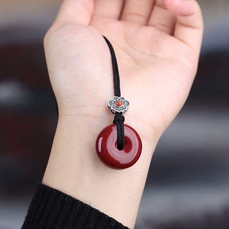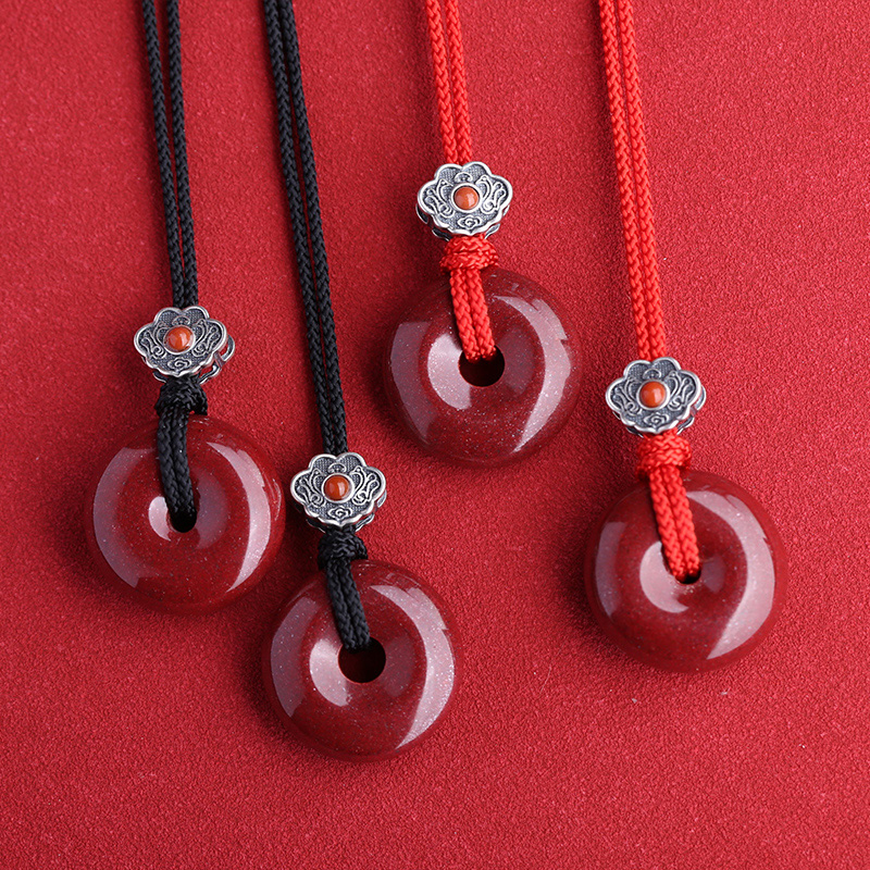 缘之固朱砂平安扣吊坠女本命年红色礼物s925银镶嵌南红吊坠龙年
