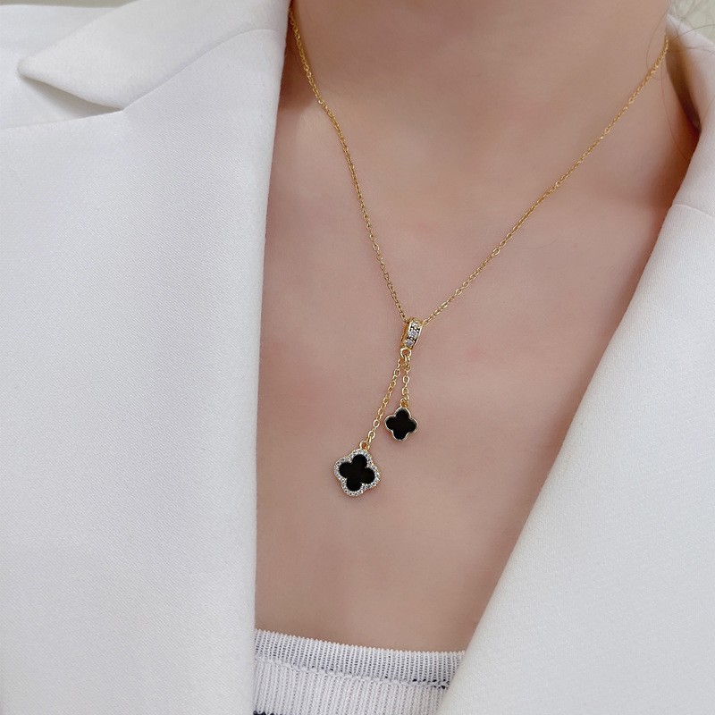 韩版高级满钻红色四叶草钛钢项链女锁骨链时尚ins小众设计饰品