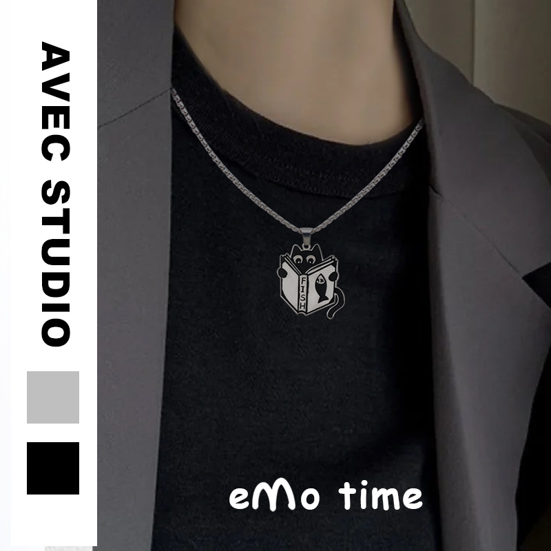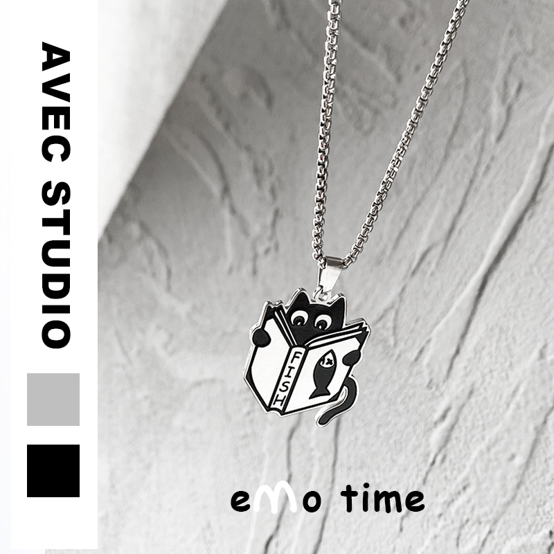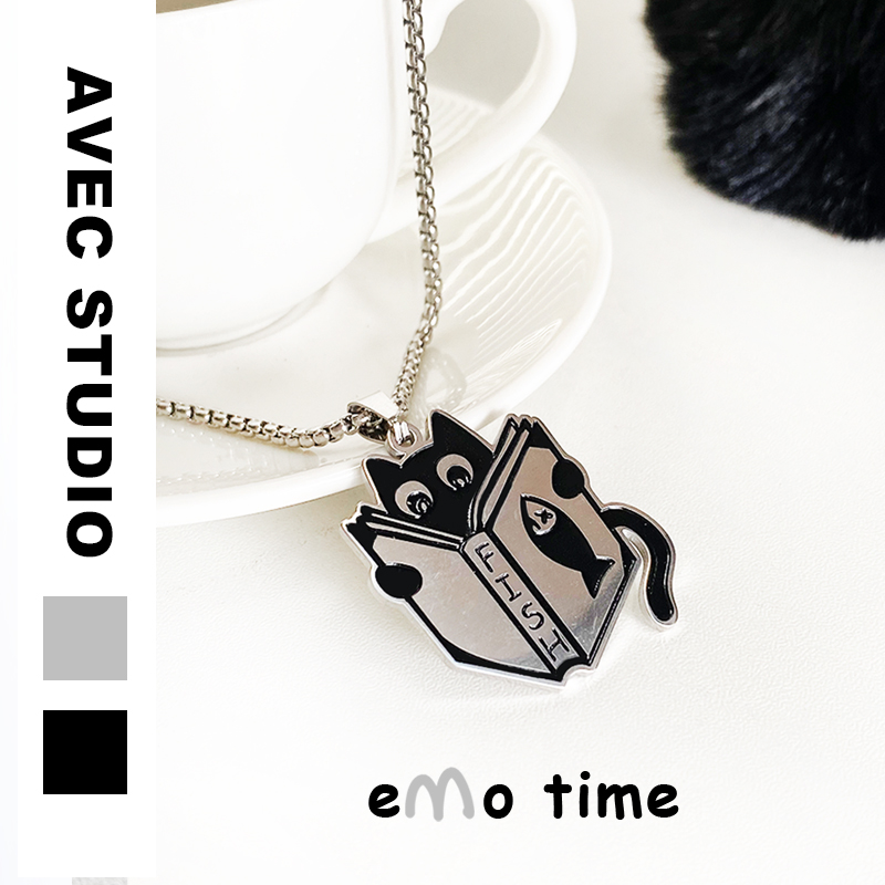 emo可爱内卷小猫咪黑猫合金项链情侣百搭配饰挂件吊坠颈饰带礼物