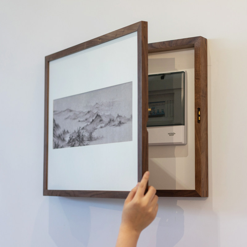 新中式黑胡桃木电表箱装饰画遮挡箱配电箱电闸盒餐厅客厅装饰画