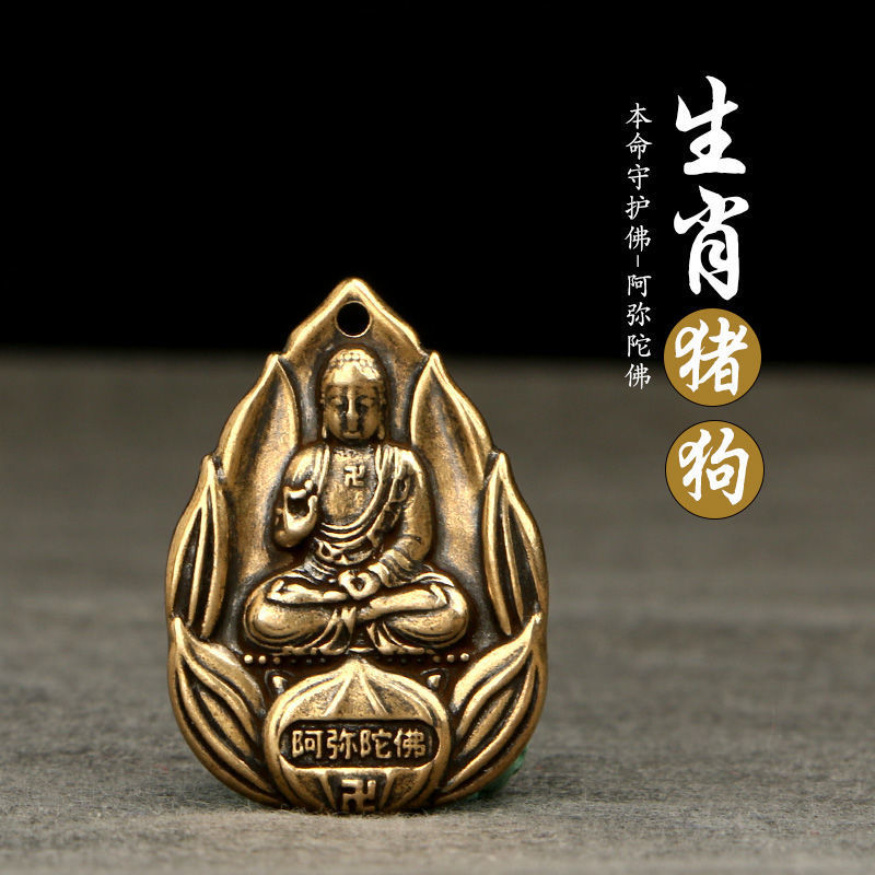 黄铜十二生肖八大守护本命佛护身钥匙扣挂件生肖饰品挂件包包吊坠