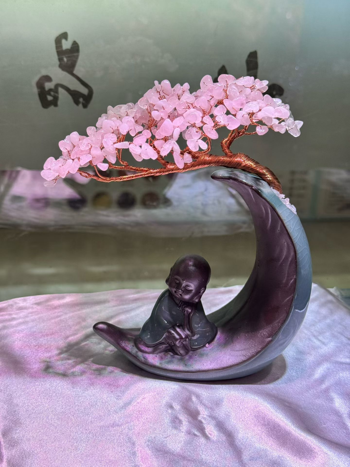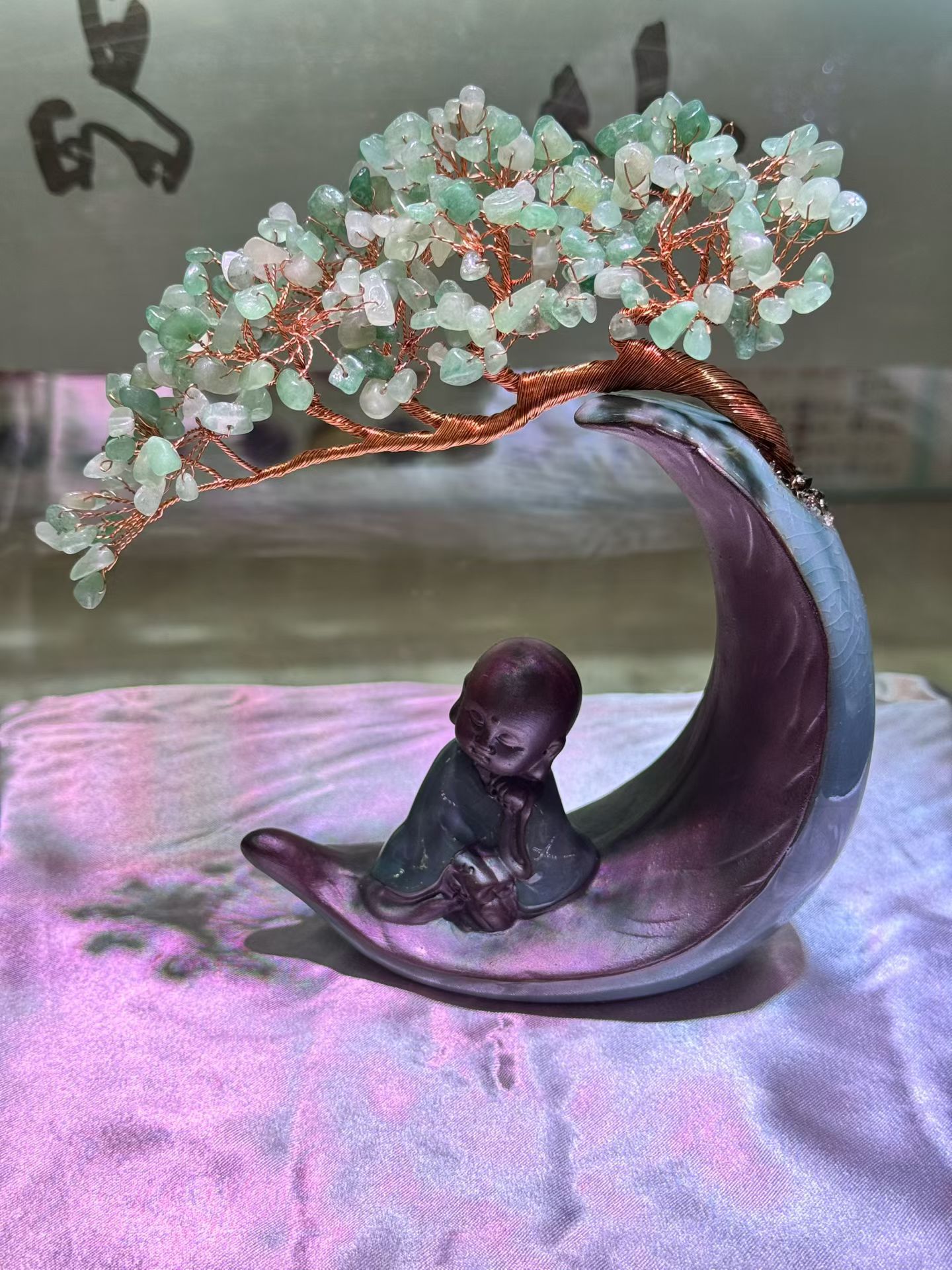 实物超好看系列! 天然水晶迎客松摆件! 佛系禅意小和尚!