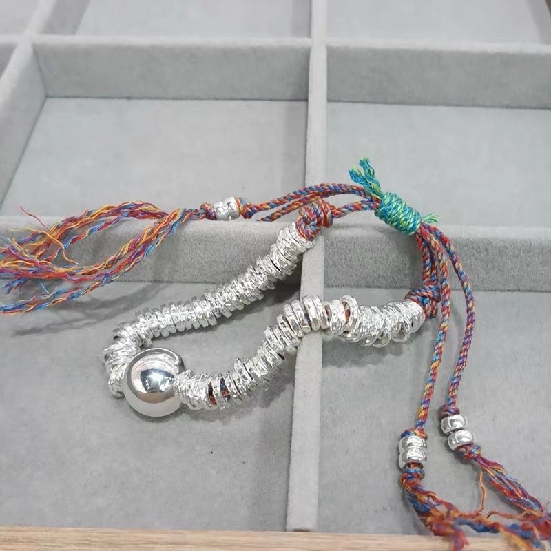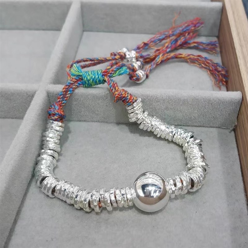 速发重工古法盘缠圆球手链足银好运招财手工编织钱串子手绳可调节