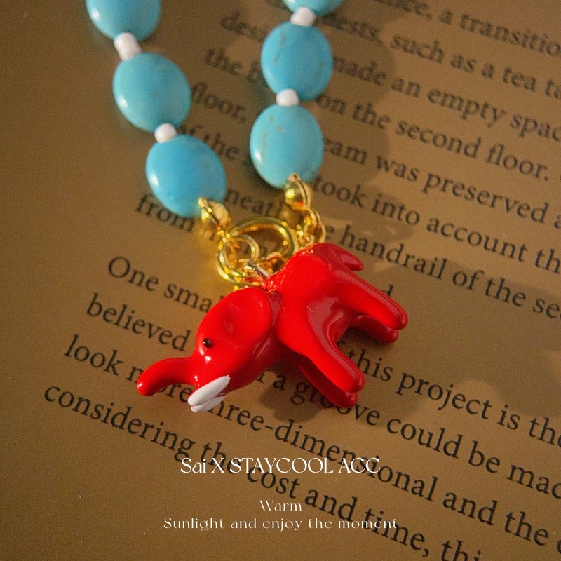 蓝色项链复古红色小象吊坠女士项链民族风毛衣链锁骨链
