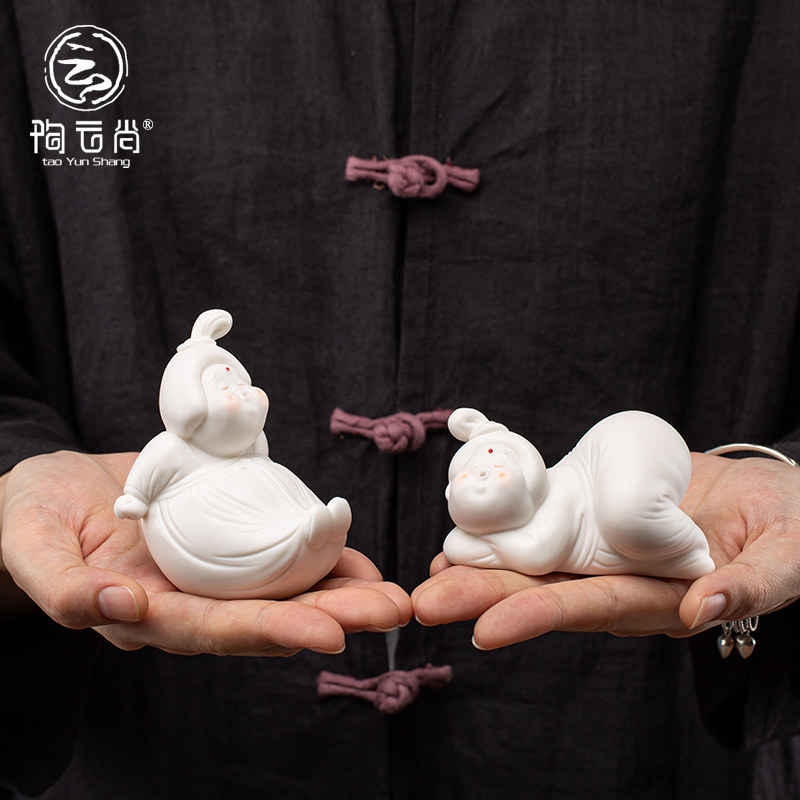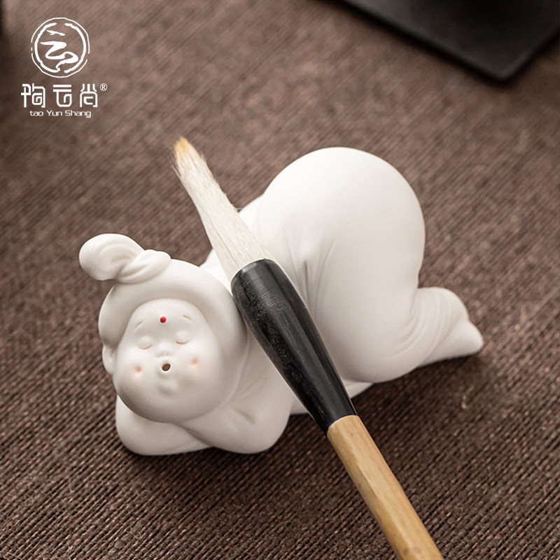 创意可爱手工陶瓷唐女笔托茶宠摆件文房用品茶搁搁笔架家居小摆件