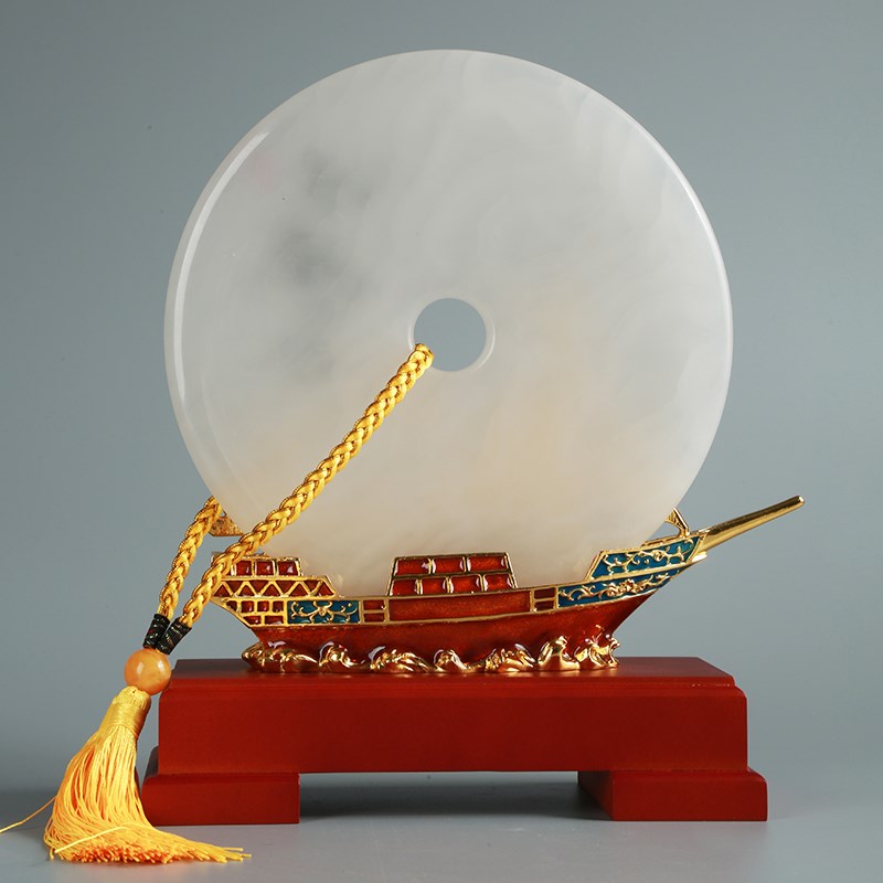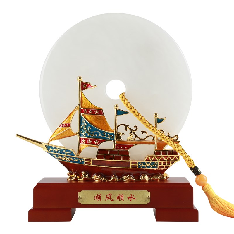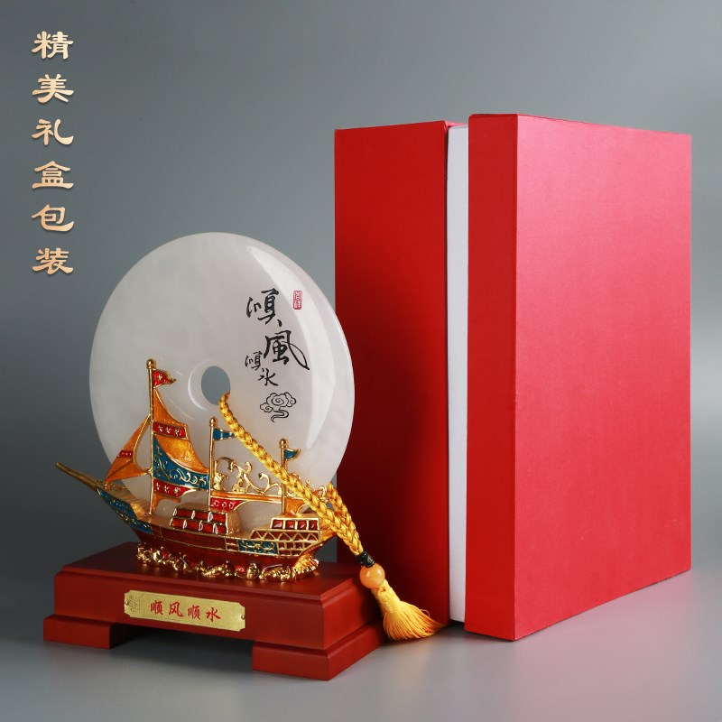 帆船玉石平安扣摆件中式家居桌面酒柜装饰品公司开业乔迁新居礼品