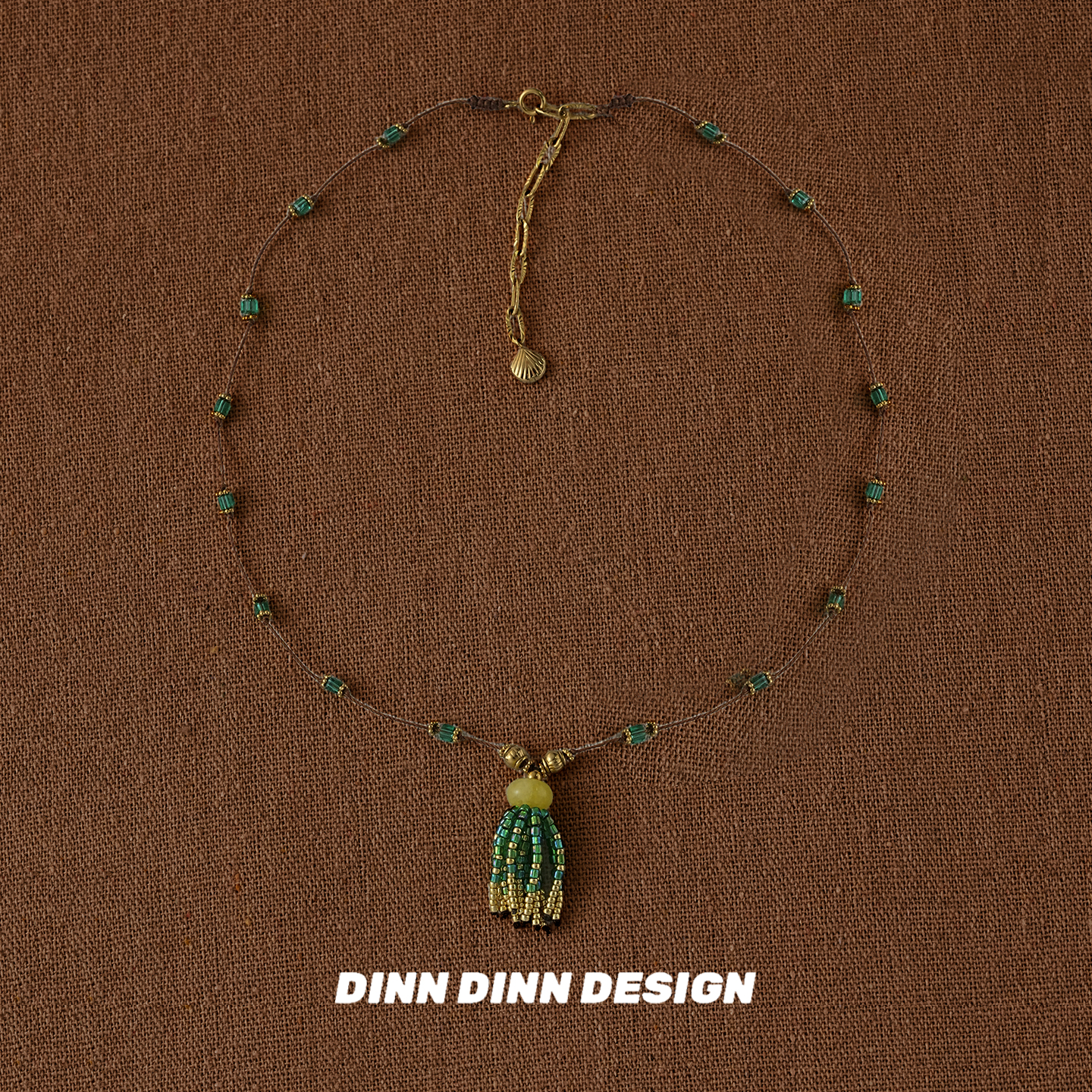 Dare买手店DINN DINN DESIGN绿色流苏串珠手工编织项链度假民族风