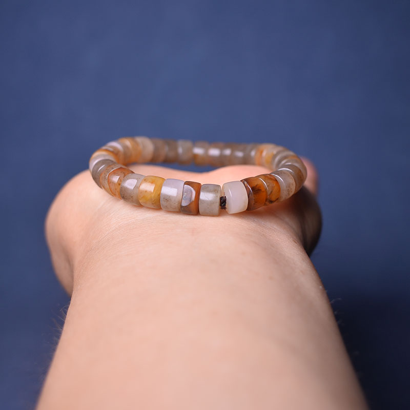 致敬708090新疆和田玉黑皮红皮黄沁白玉籽料药片珠子男女款手串