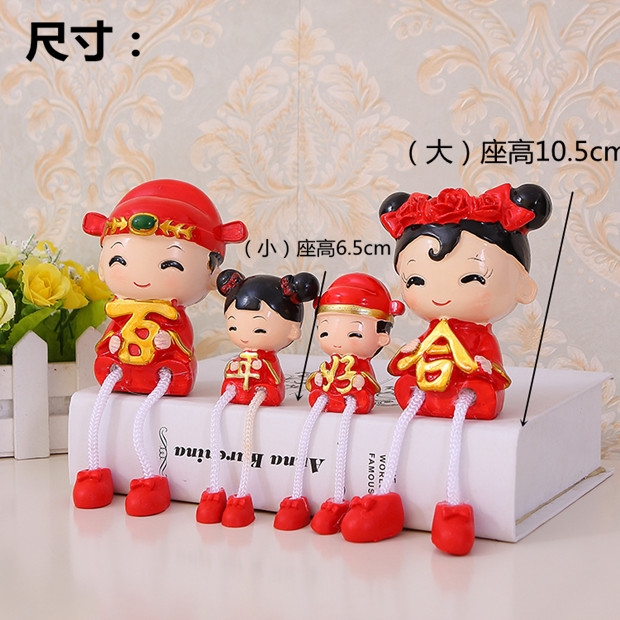 田园家居装饰品小摆件房间树脂吊脚娃娃可爱兔子一家客厅卧室创意