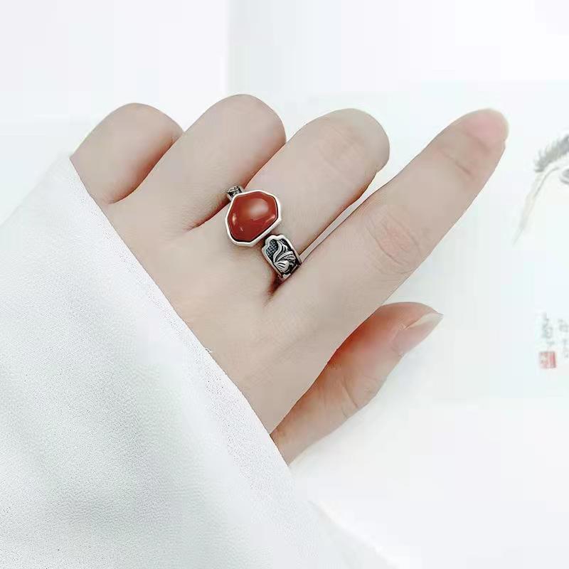 复古做旧镶嵌仿和田玉如意戒指女轻奢高级感民族风气质新款潮指环
