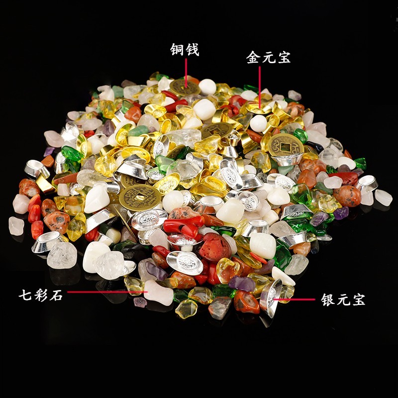 极速聚宝盆内装饰品金银元v宝家用七彩石供奉七宝石水晶球居家摆