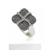 自营 Suzy Levian 纯银蓝色和白色蓝宝石和钻石口音包裹垫形戒指