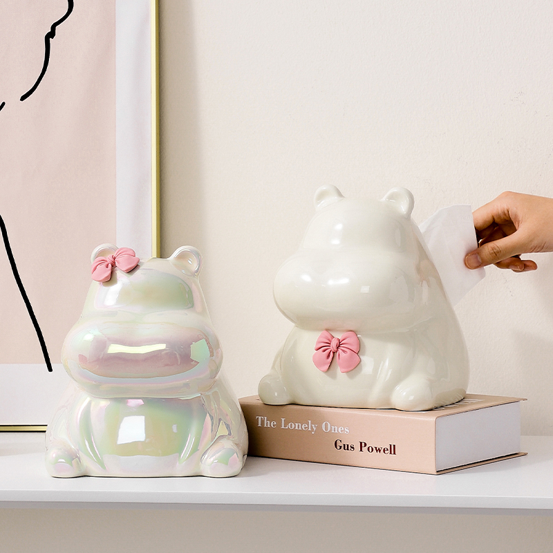 速发创意河马小众件级感饰巾盒客厅家用轻奢装纸品摆高抽纸盒礼物