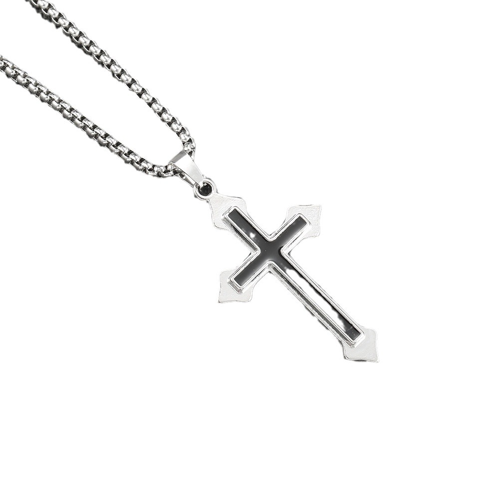 跨境嘻哈项链饰品男爆款街头十字架个性蹦迪合金挂坠毛衣链批发