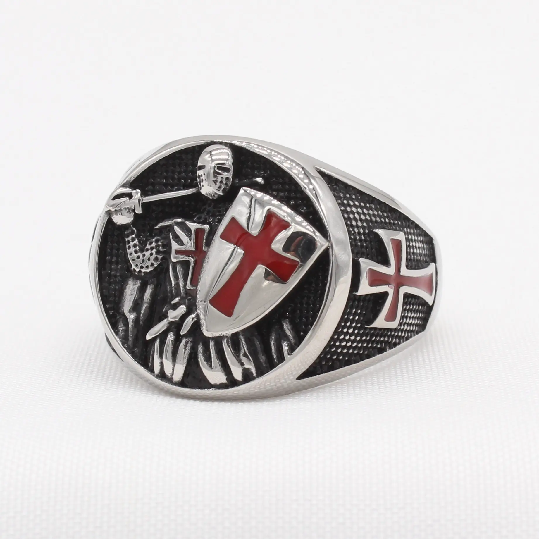 r1720 饰品 欧美个性复古骑士盾牌十字男士钛钢戒指