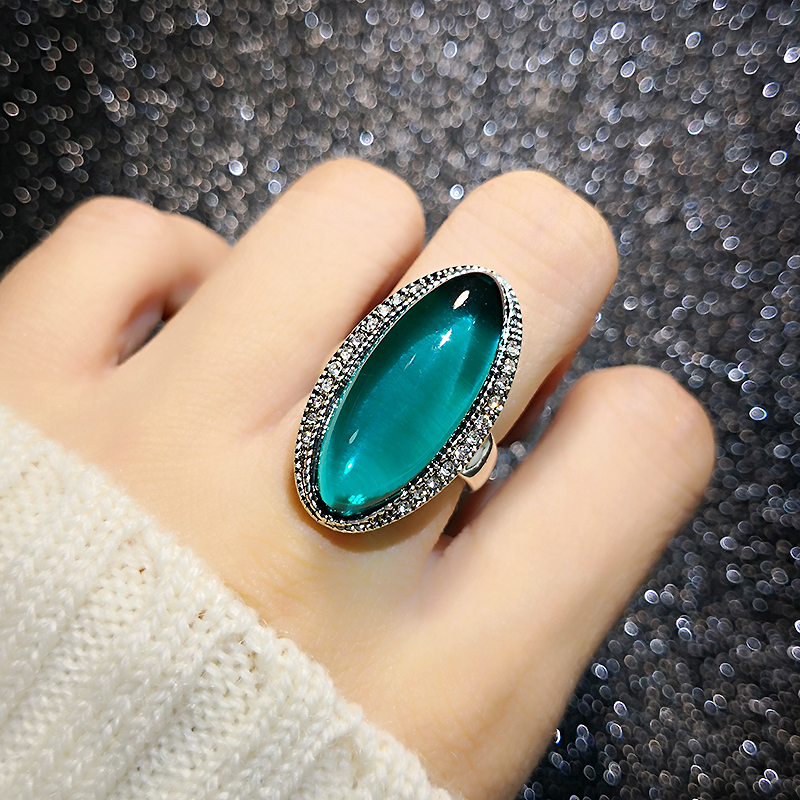 食指戒指女大气潮韩国镀金复古简约创意个性奢华海蓝宝石装饰指环