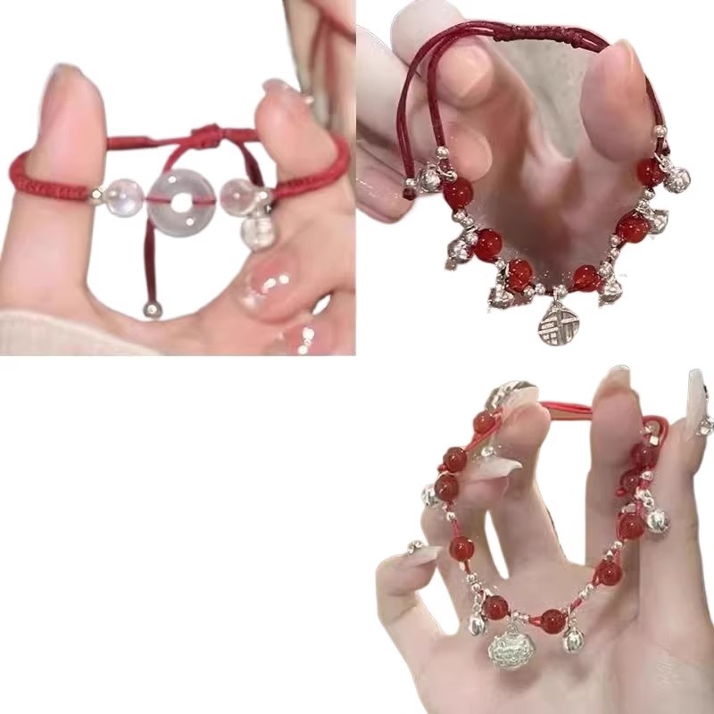 手链手饰铃铛~祥云少女编织小众设计高级感手绳新中式本命年红绳