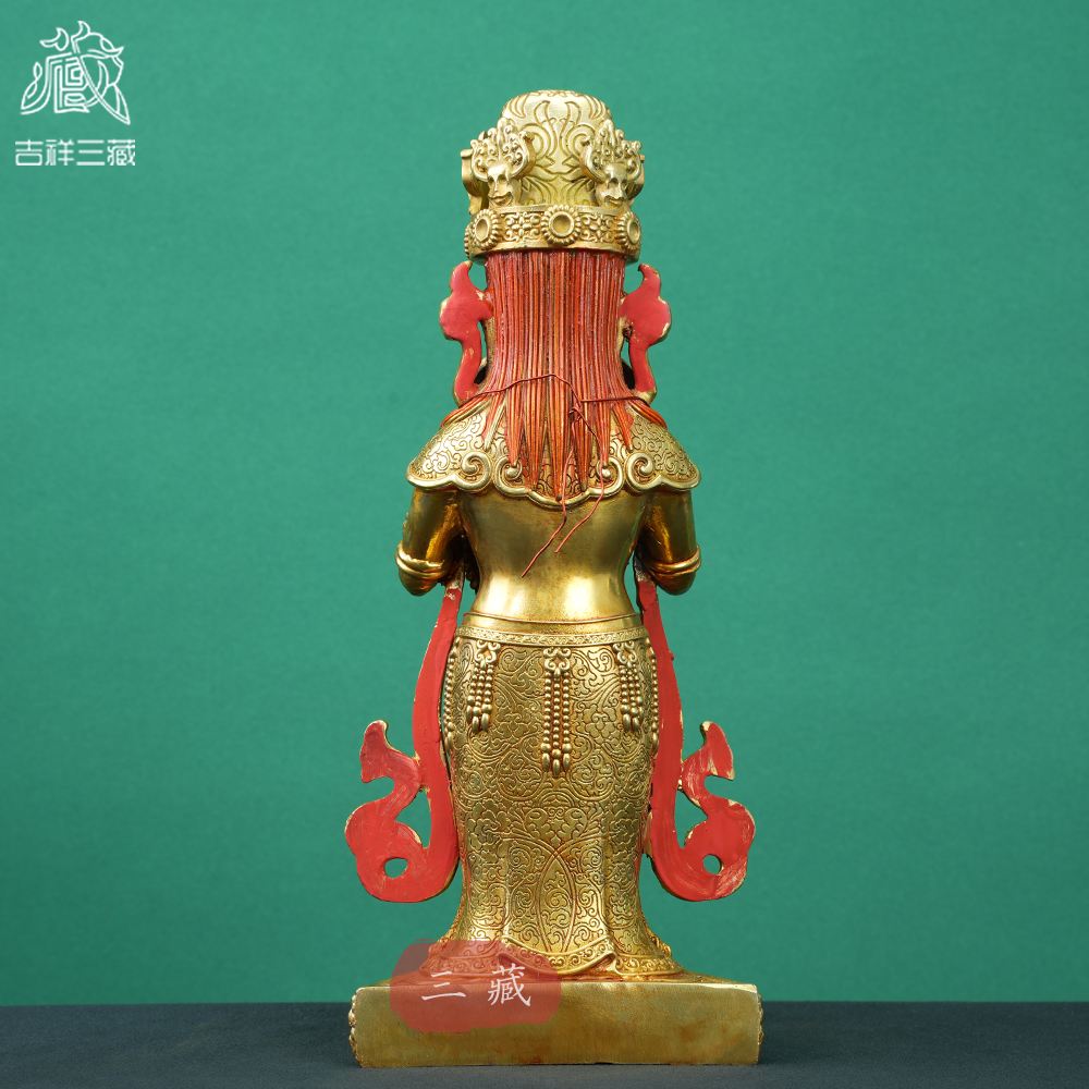 藏传密宗纯铜扎基拉姆佛像全鎏金10寸家用供奉女财神铜像桌面摆件