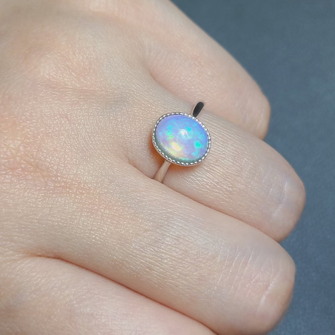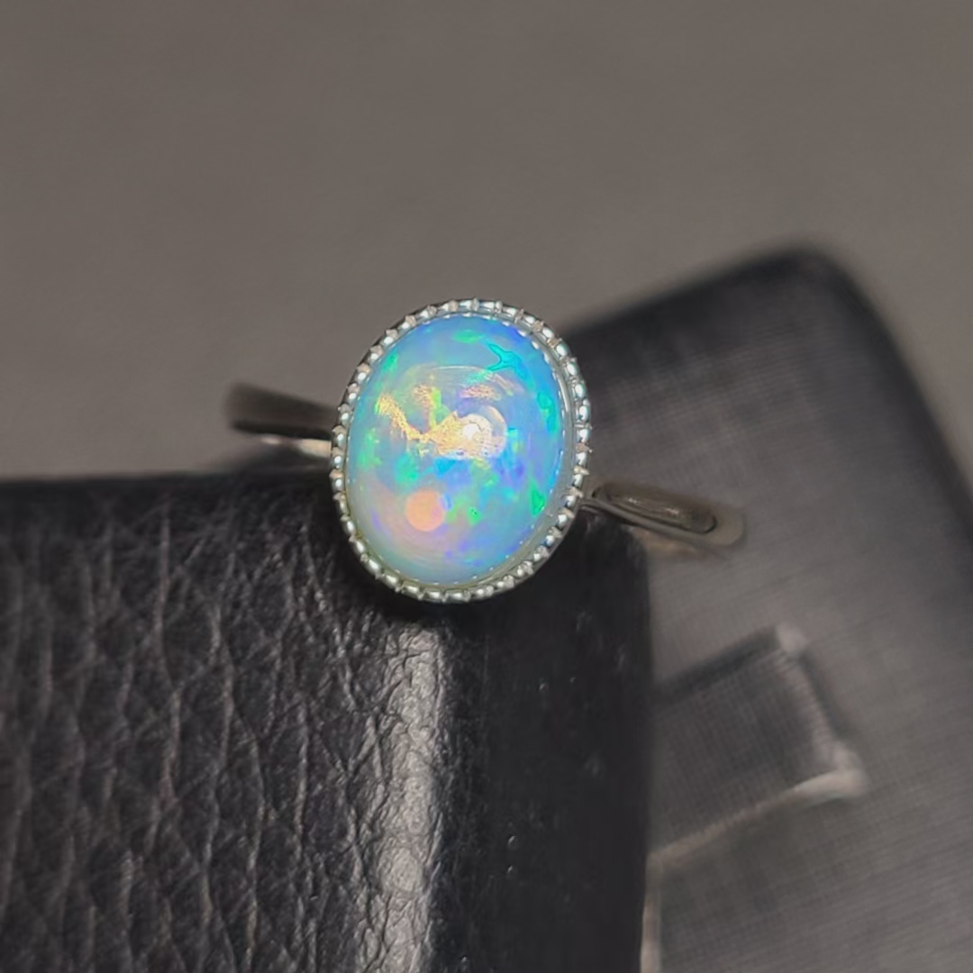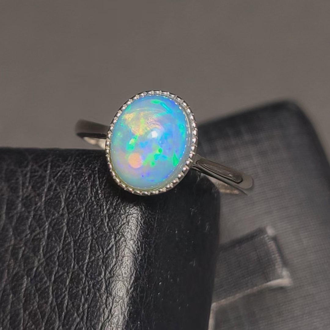天然欧泊戒指 量身定做款式 复古包镶 7*9mm无染色款式耐看