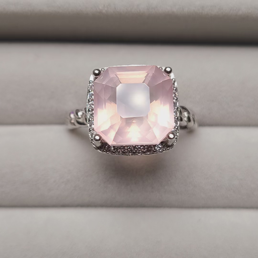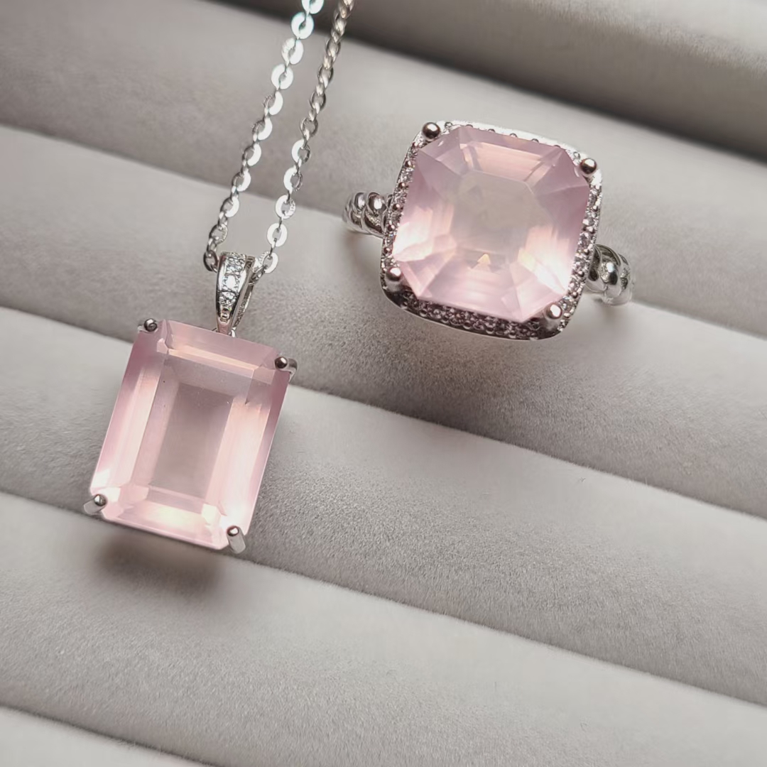 粉晶戒指 粉晶吊坠 切割面的粉水晶 芙蓉石 粉色方糖 全净无暇