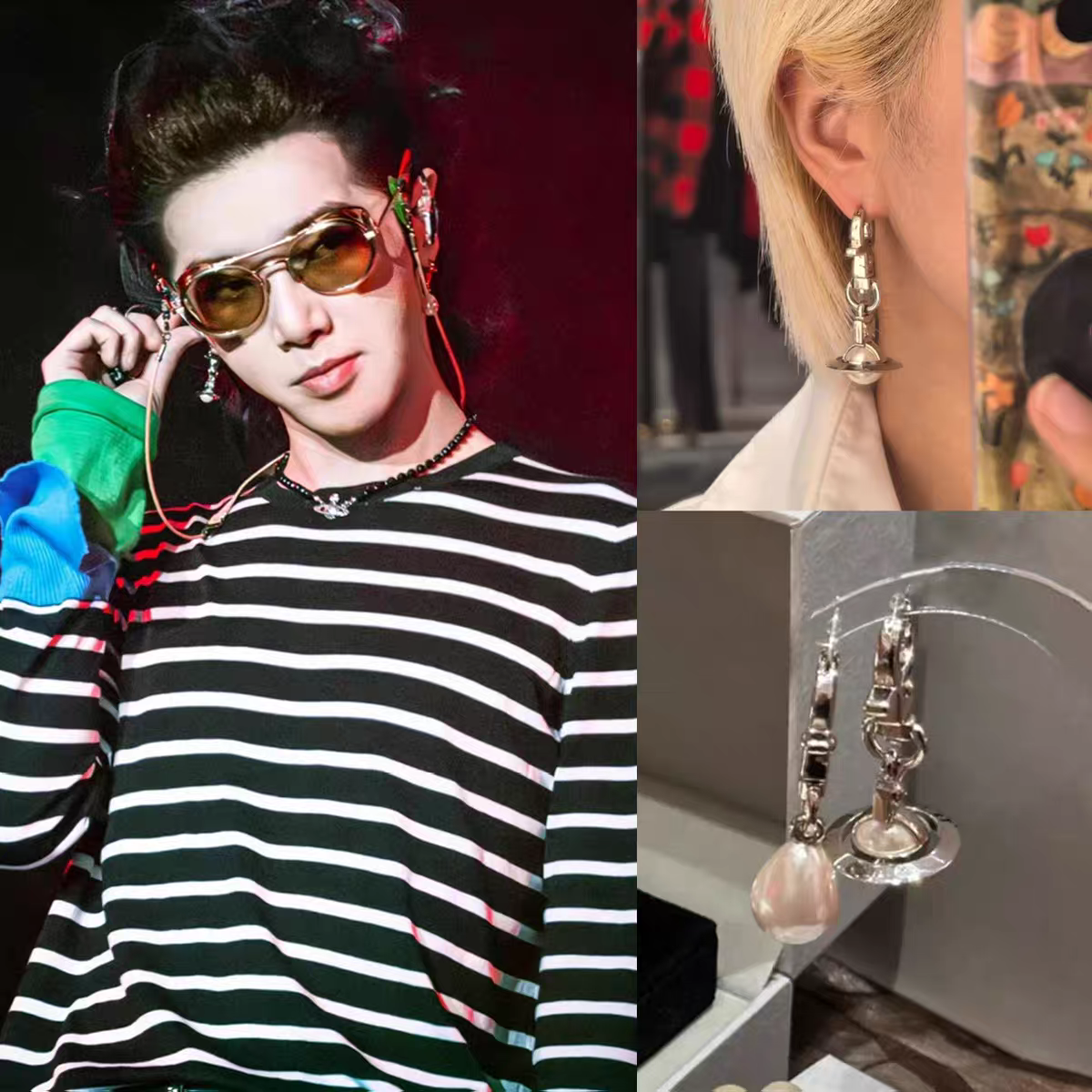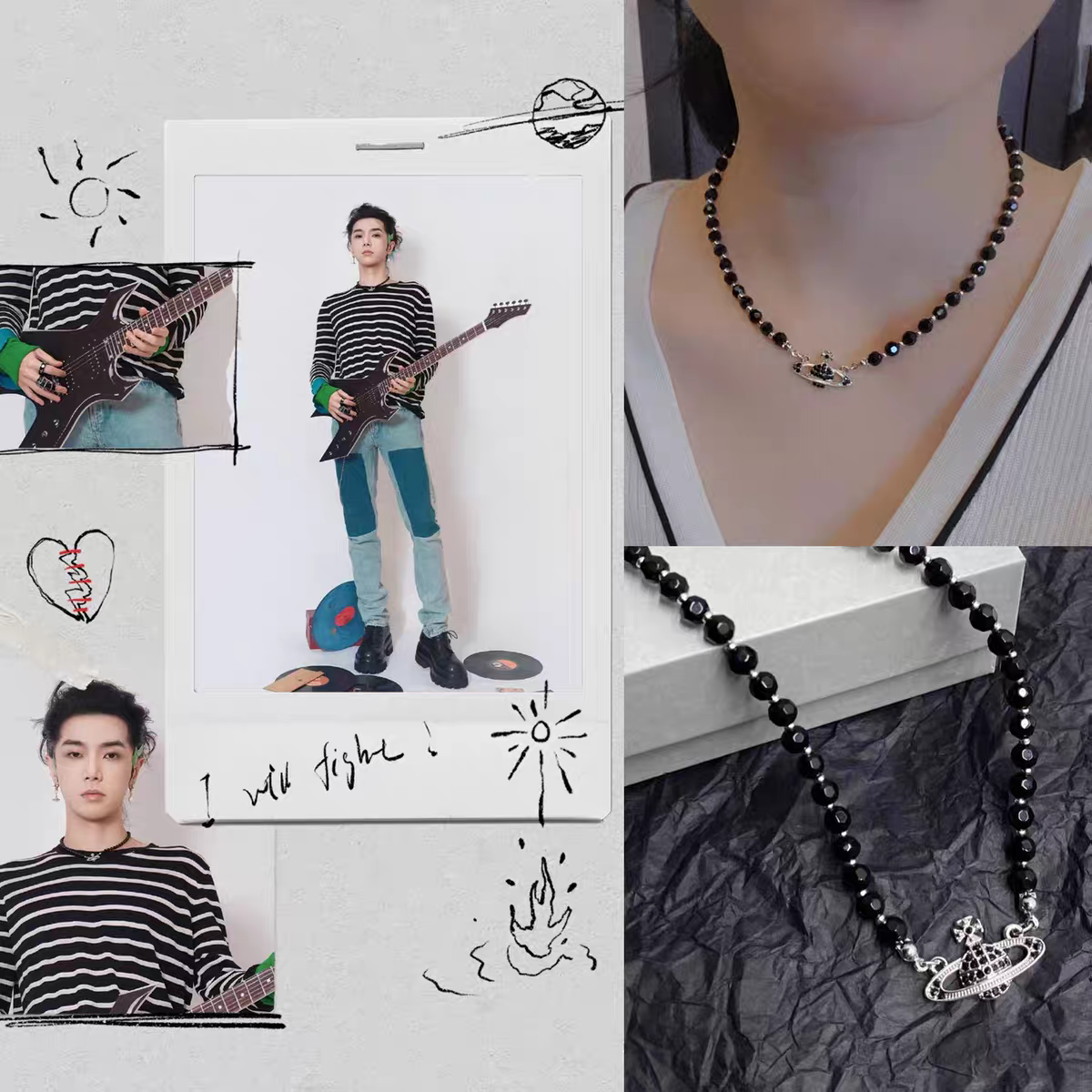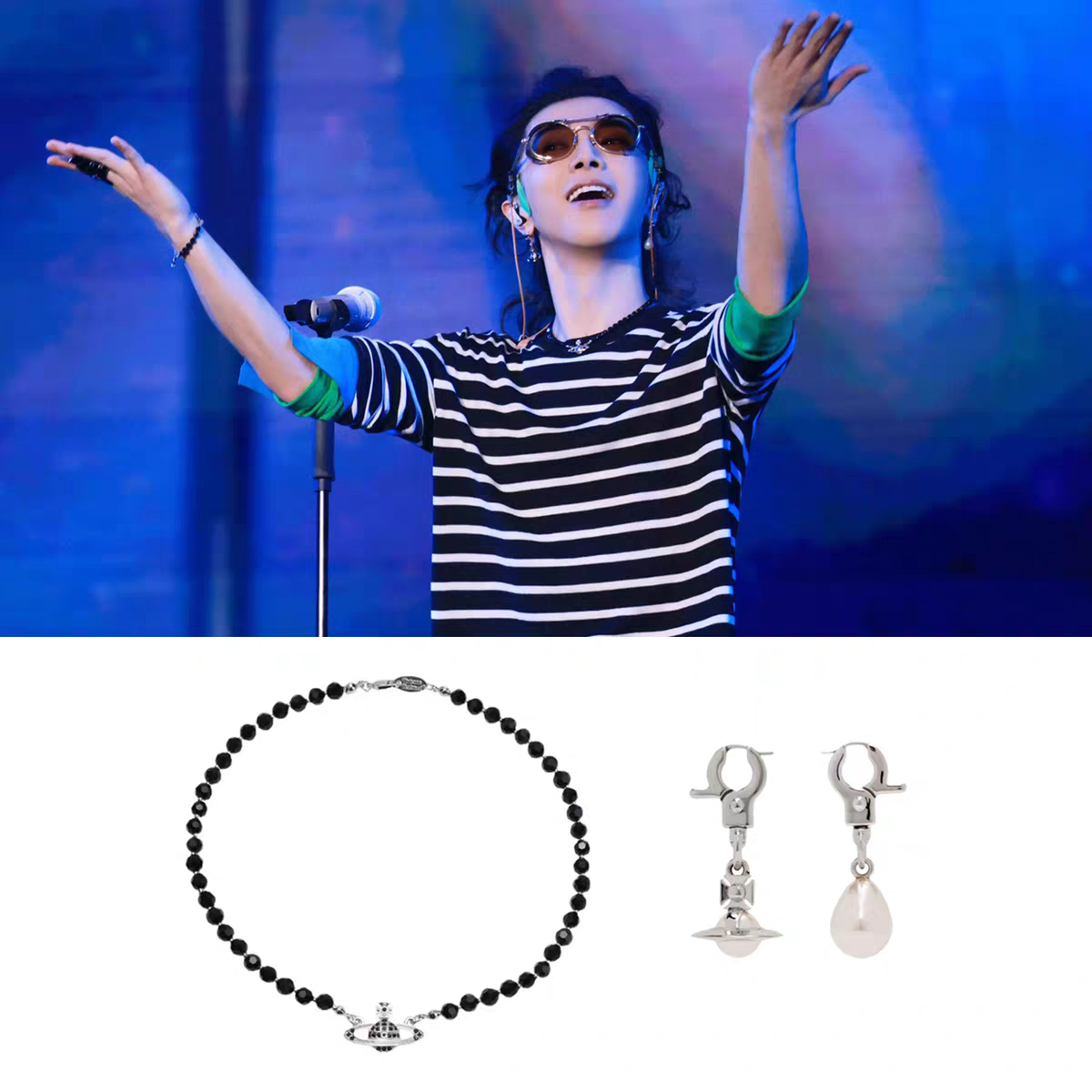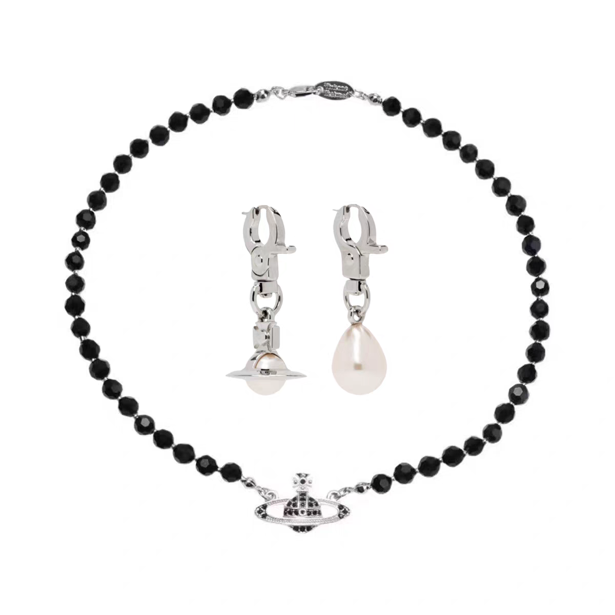 华晨宇同款黑珠星球颈项链圆钓扣珍珠耳环套装2025火星音乐节周边