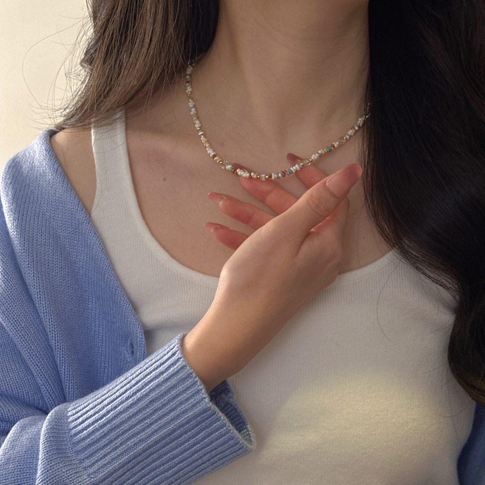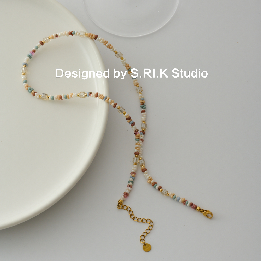 十里间【浅浅肉桂】甜美度假风寿山石彩色串珠项链小清新锁骨链
