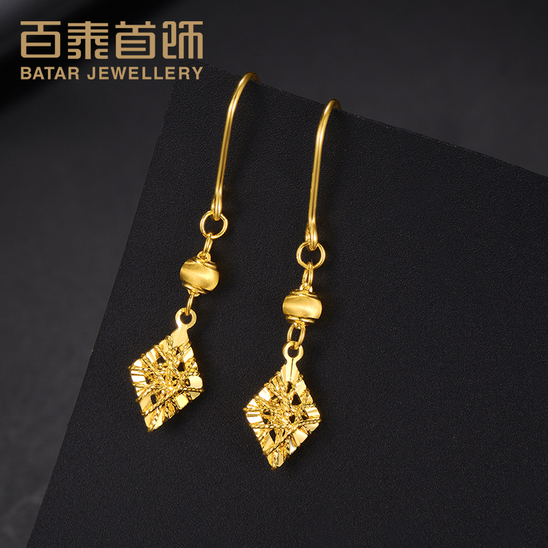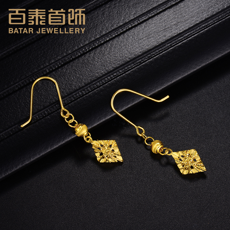百泰黄金耳钉足金999耳饰金耳钩耳坠耳环气质长款时尚送女友礼物