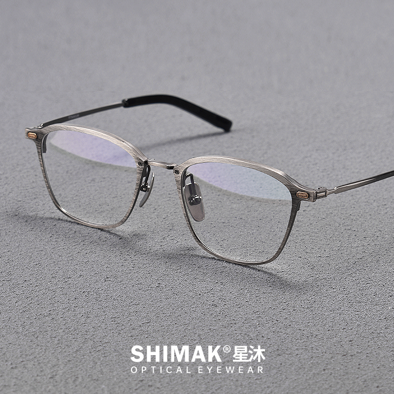 日系超轻商务纯钛方框个性眼镜框男款大脸镜架女可配近视拉丝枪色
