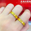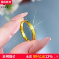 黄金色米字车花钻纹戒指时尚简约素圈指环情侣对戒沙金送礼不掉色