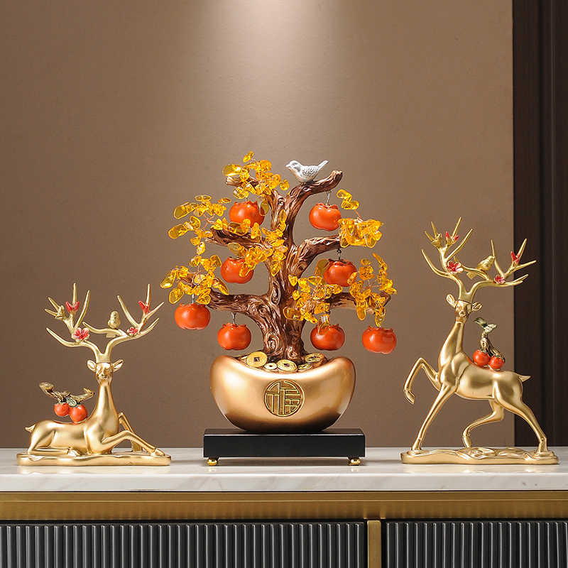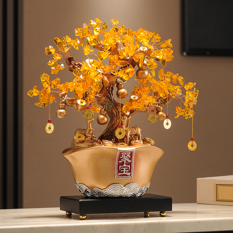 事事如意招财元宝发财树摆件新中式玄关酒柜办公室乔迁新居礼品
